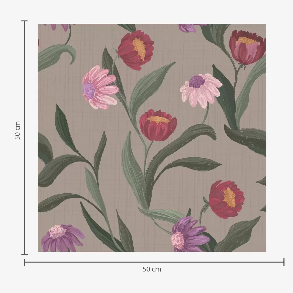 Papel pintado Flores de color rosa rojizo sobre fondo gris pardo, tallos largos Nr. a00631v2