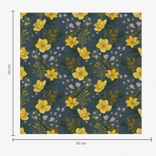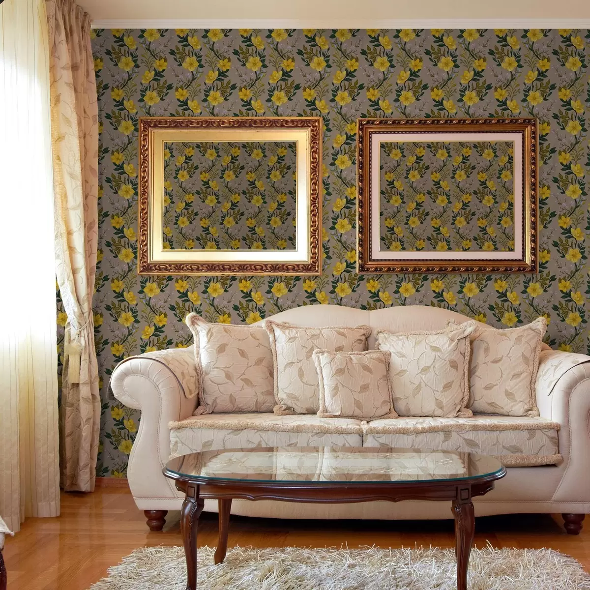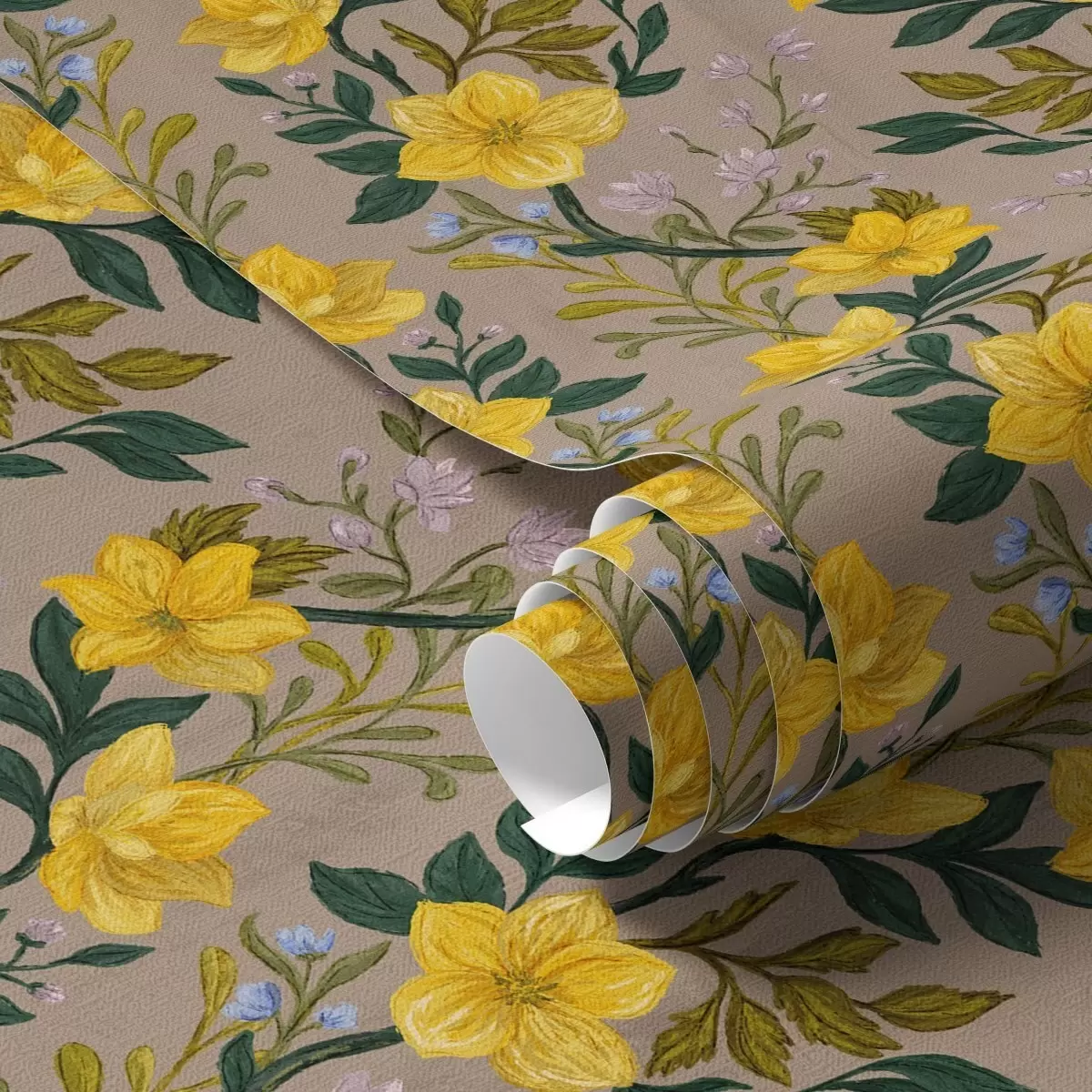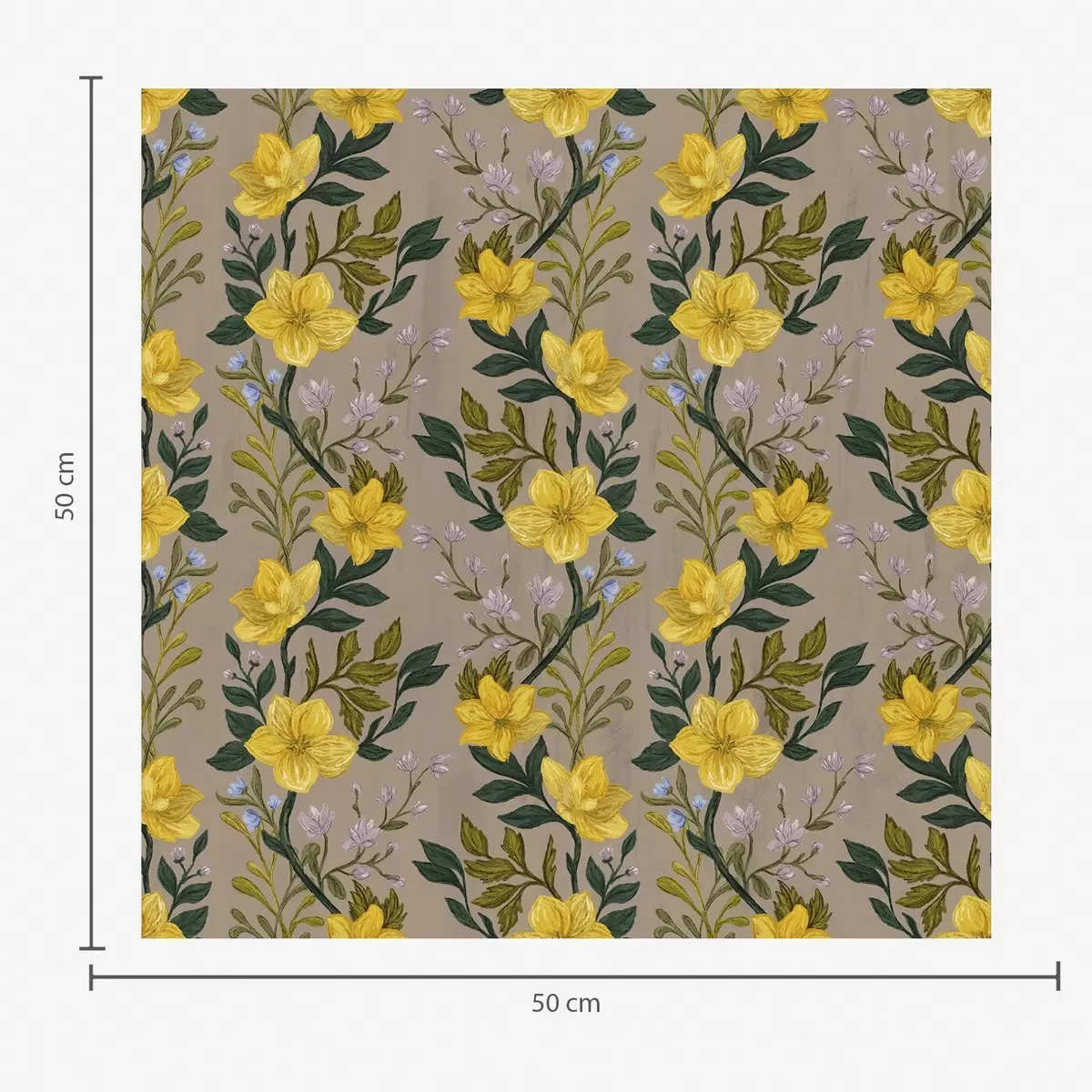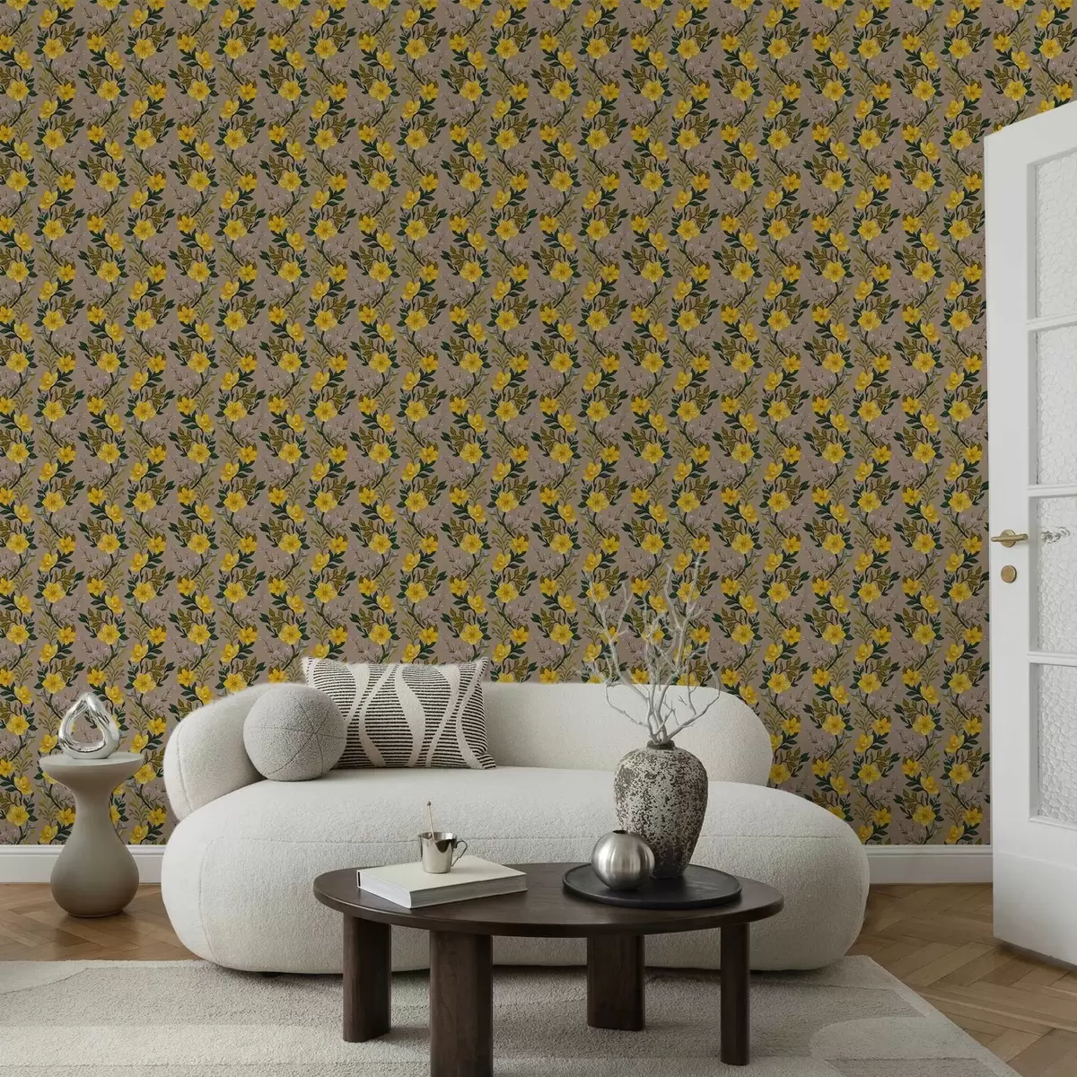 Papel pintado Flores amarillas en guirnaldas verticales sobre fondo gris topo Nr. a00632v1