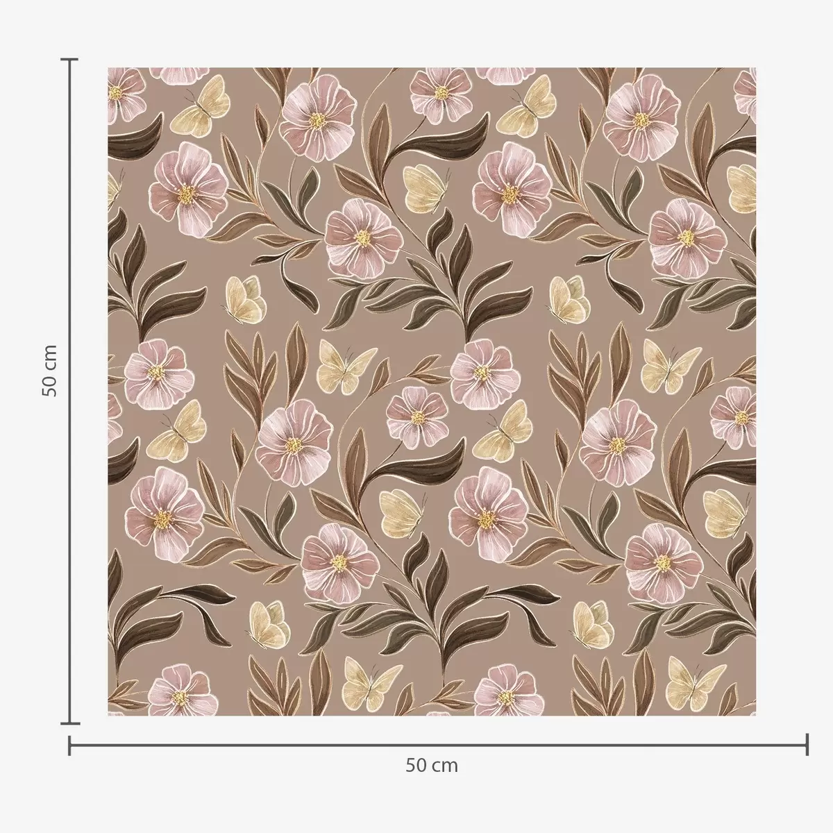 Papel pintado Flores rosas y mariposas sobre un cálido fondo marrón Nr. a00633v1