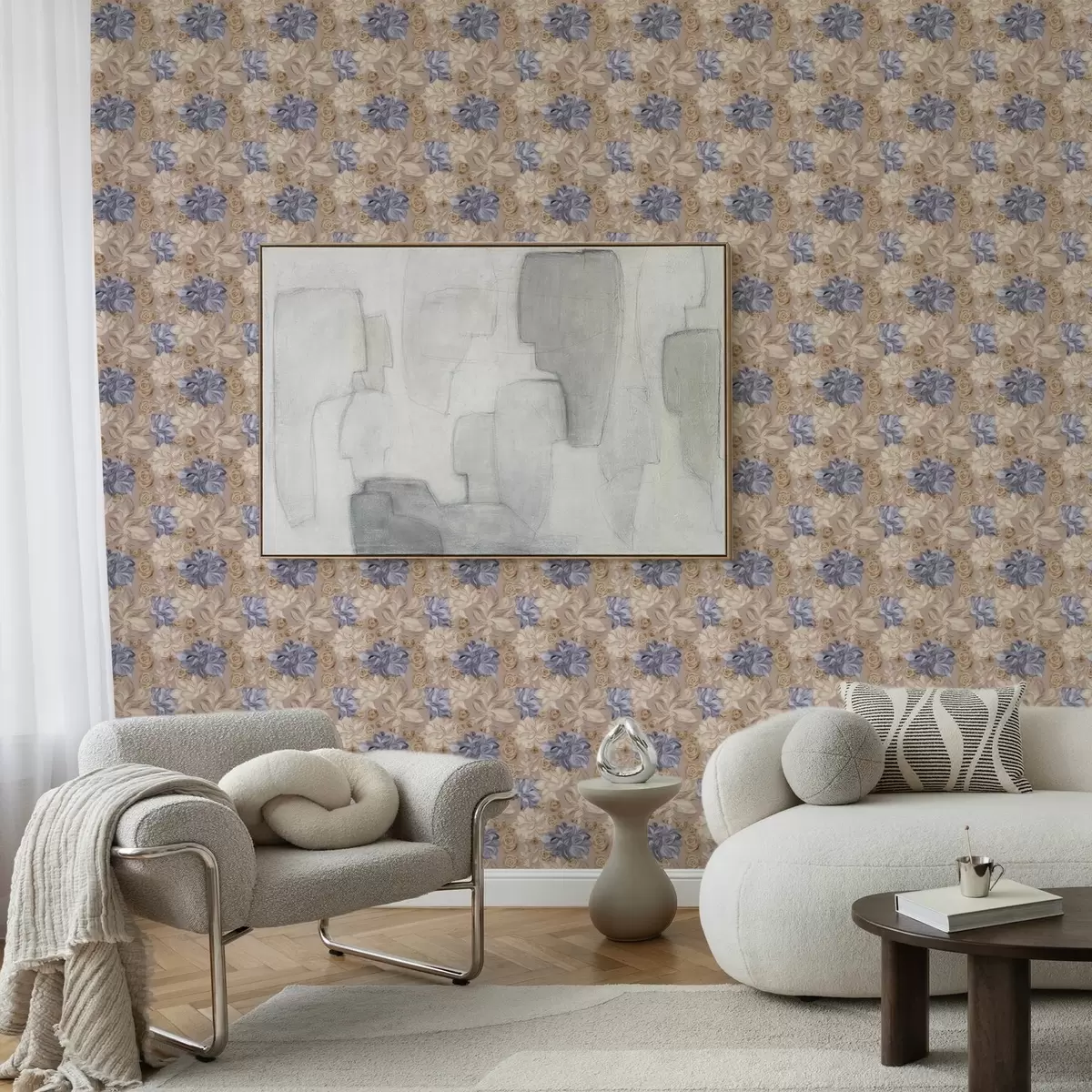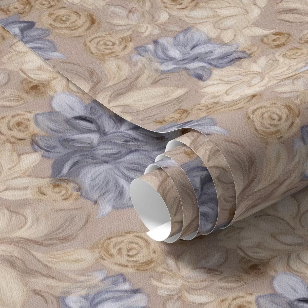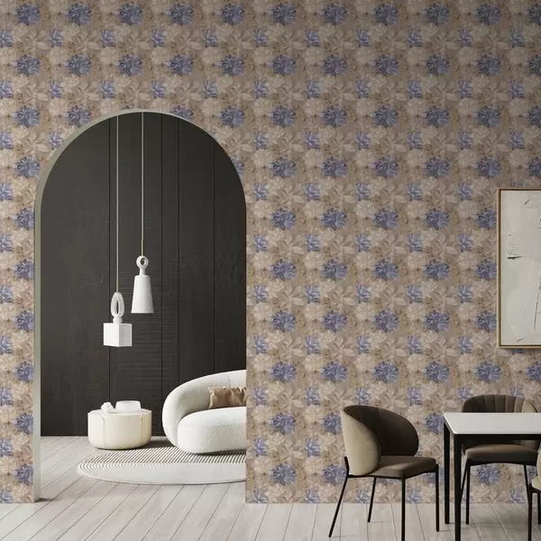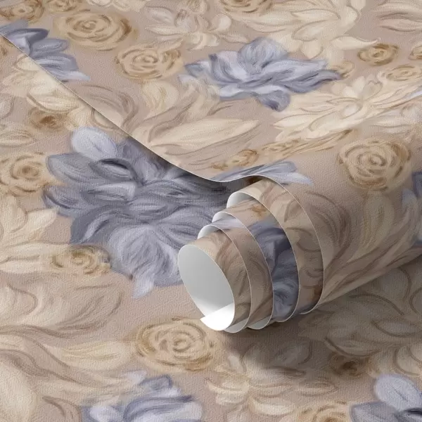 Papel pintado Crema exuberante y flores azules en una paleta de colores pastel Nr. a00634