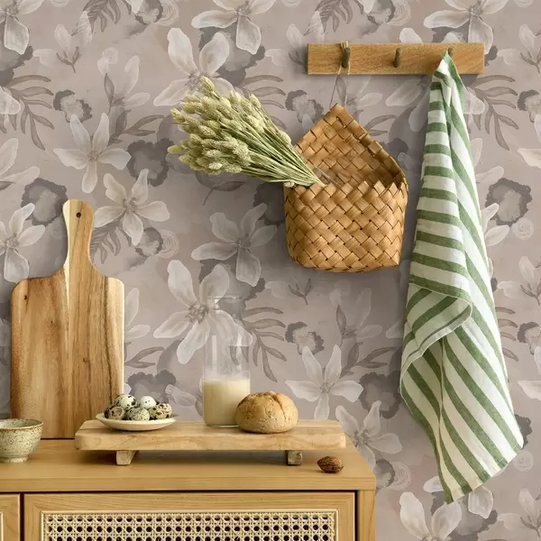 Papel pintado Grandes flores beige con manchas abstractas de acuarela Nr. a00635