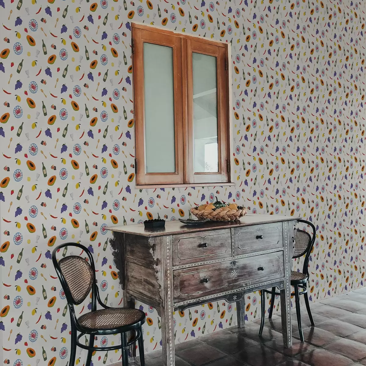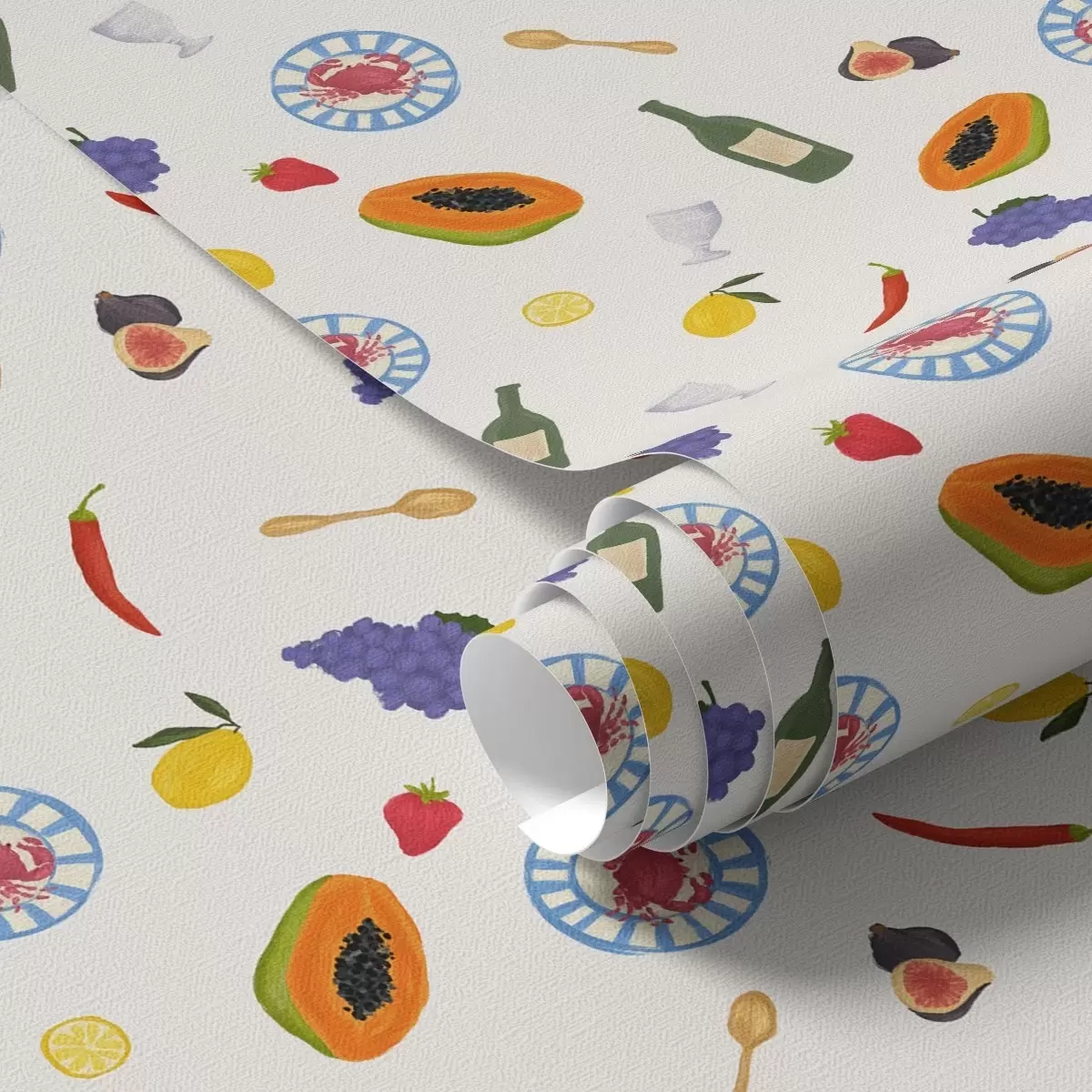 Papel pintado Fruta, vino y especias dispuestos sobre un fondo claro Nr. a00639