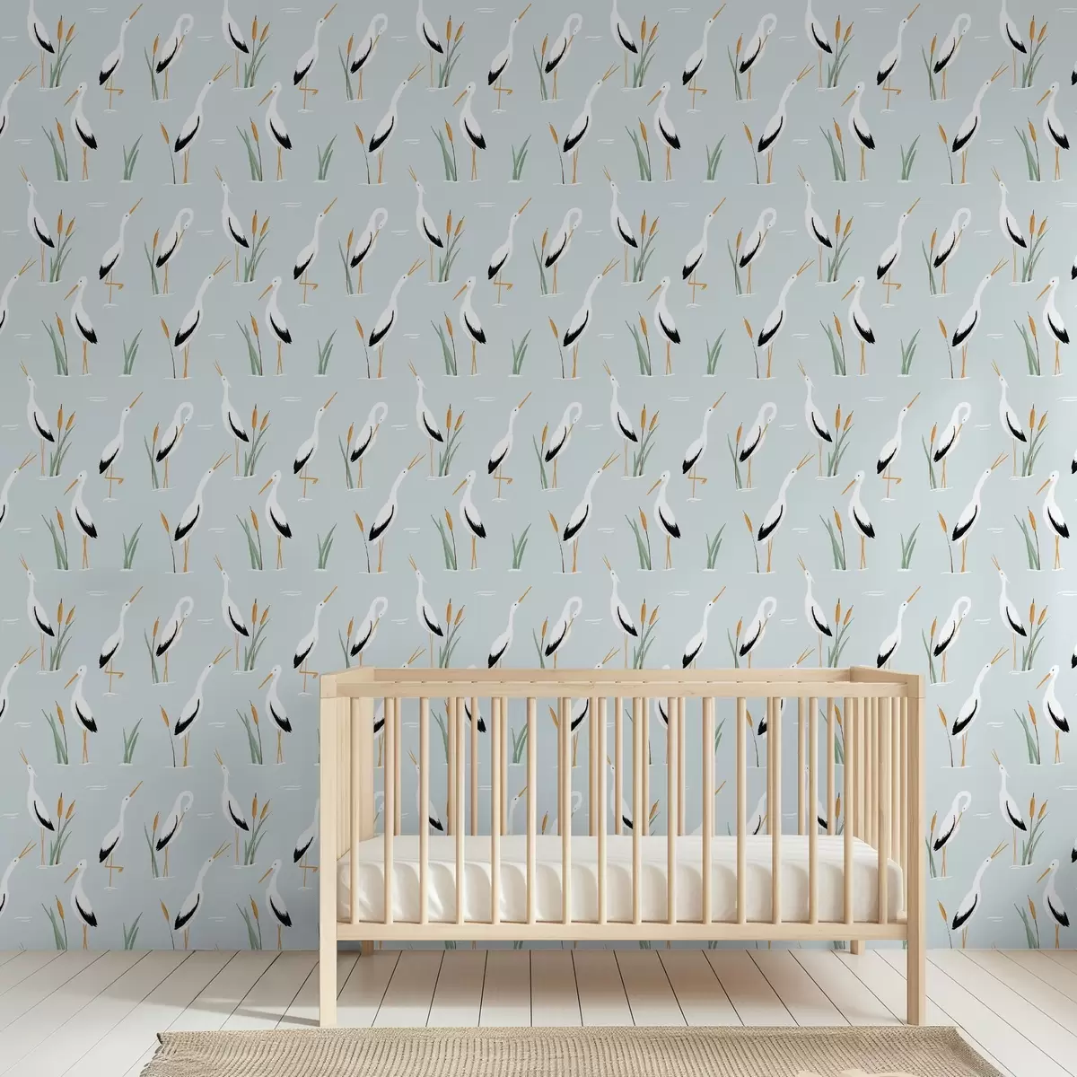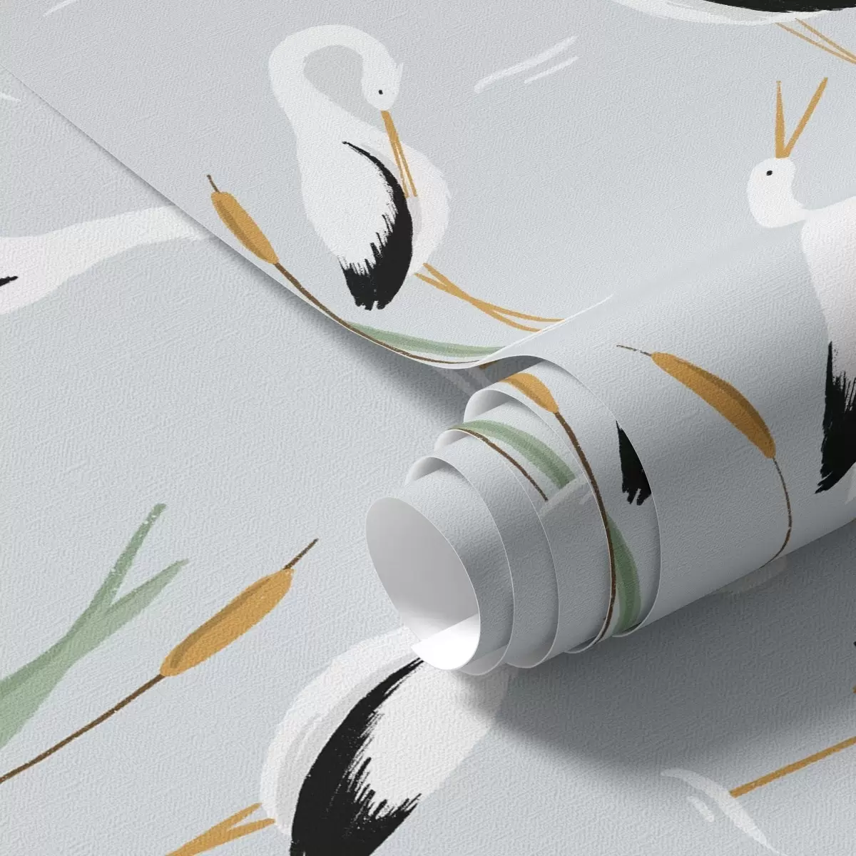 Papel pintado Garzas entre juncos sobre un suave fondo azul a00650v1