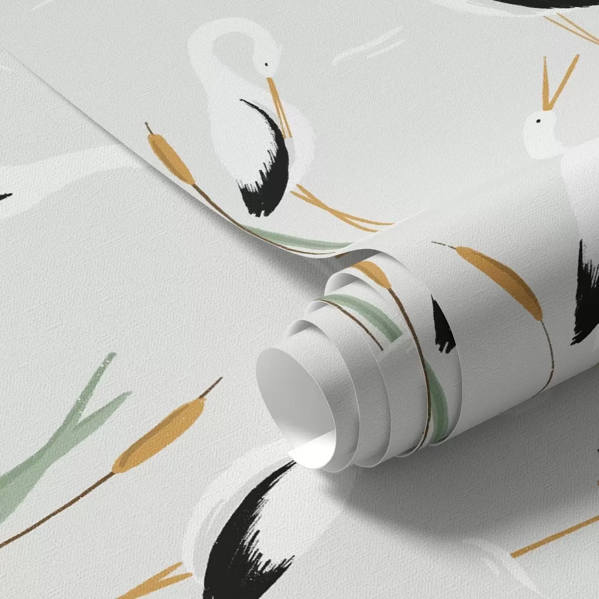 Papel pintado Garzas entre juncos sobre un fondo claro Nr. a00650v2