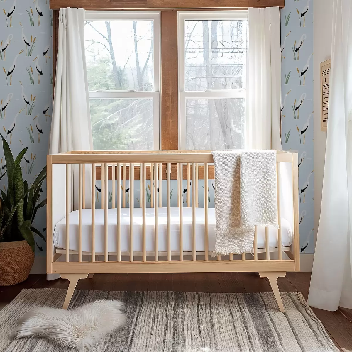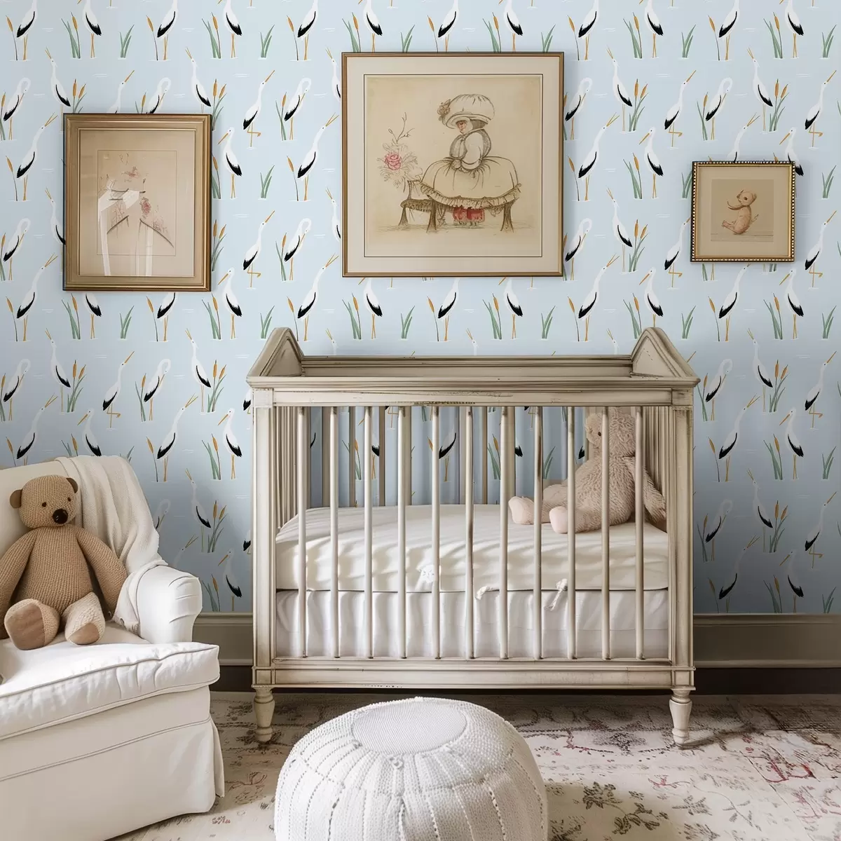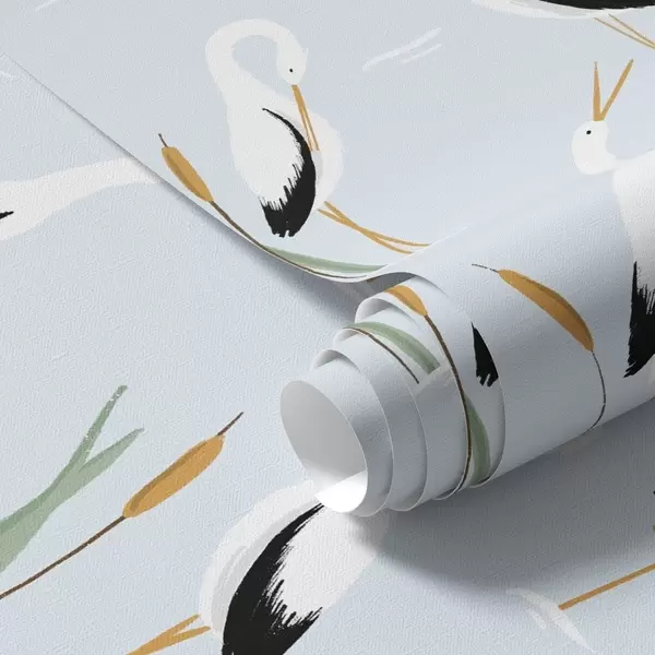 Papel pintado Garzas entre juncos sobre un suave fondo azul Nr. a00650v3
