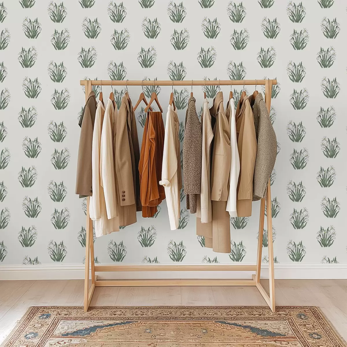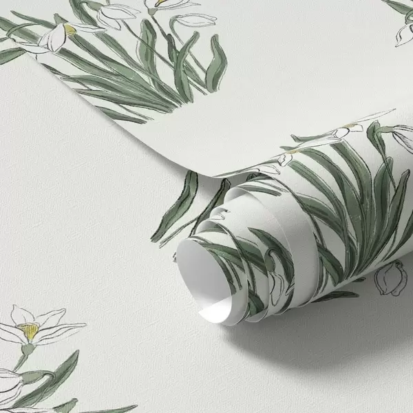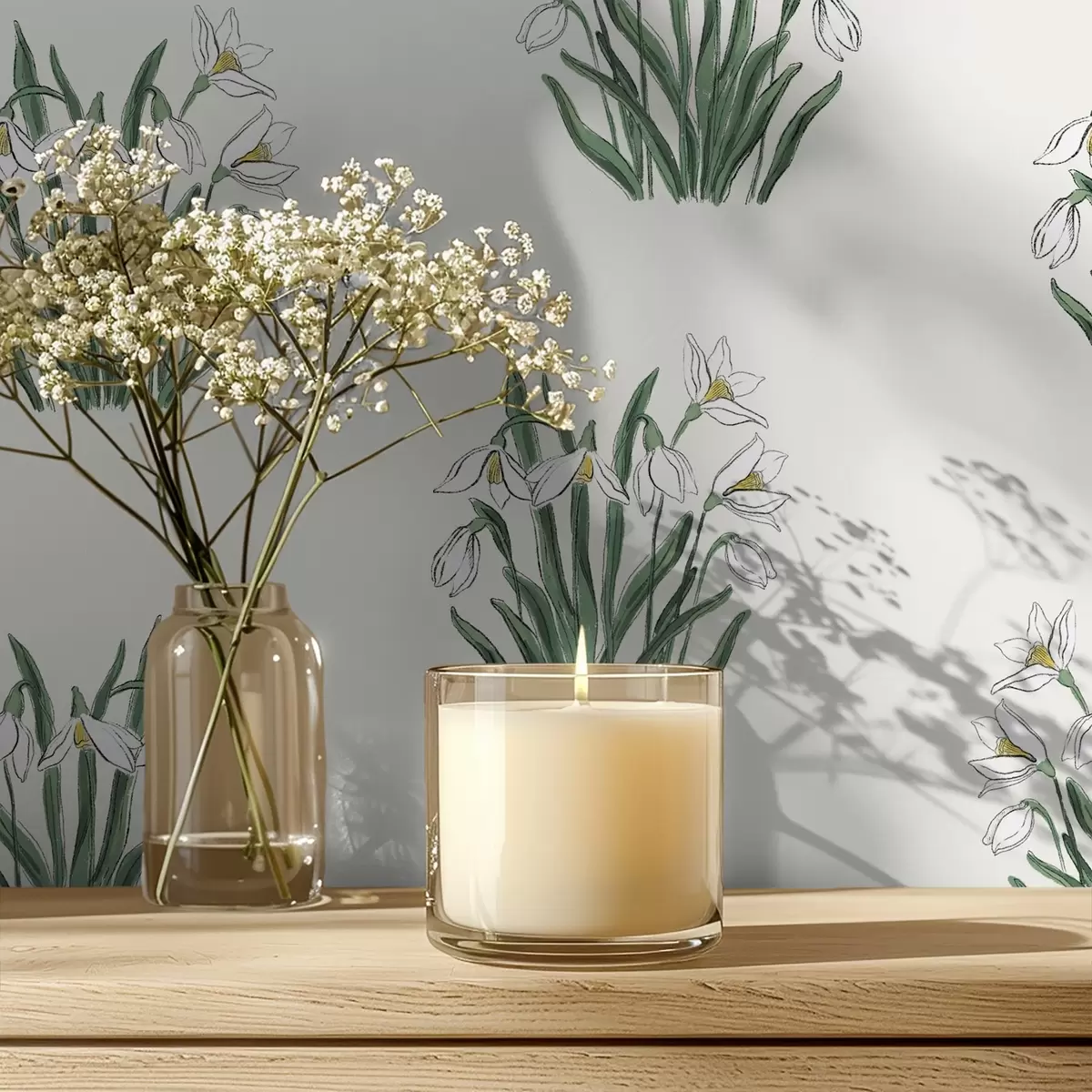 Papel pintado Campanillas de invierno con hojas verdes sobre fondo gris claro Nr. a00651v1