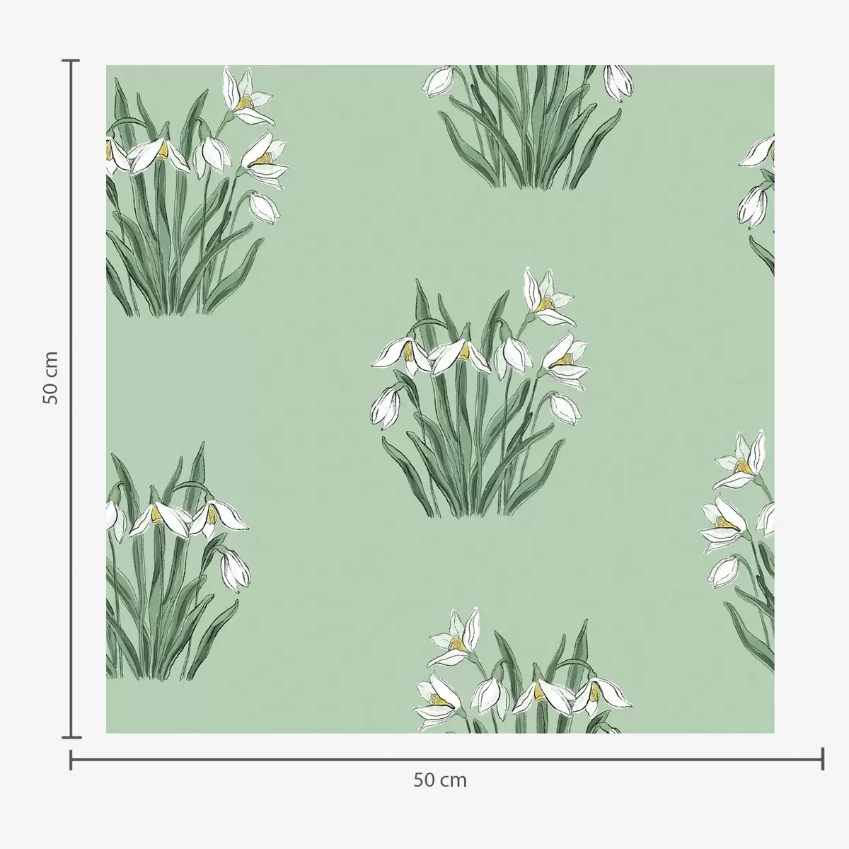 Papel pintado Campanillas de invierno con hojas verdes sobre un fondo verde suave Nr. a00651v4