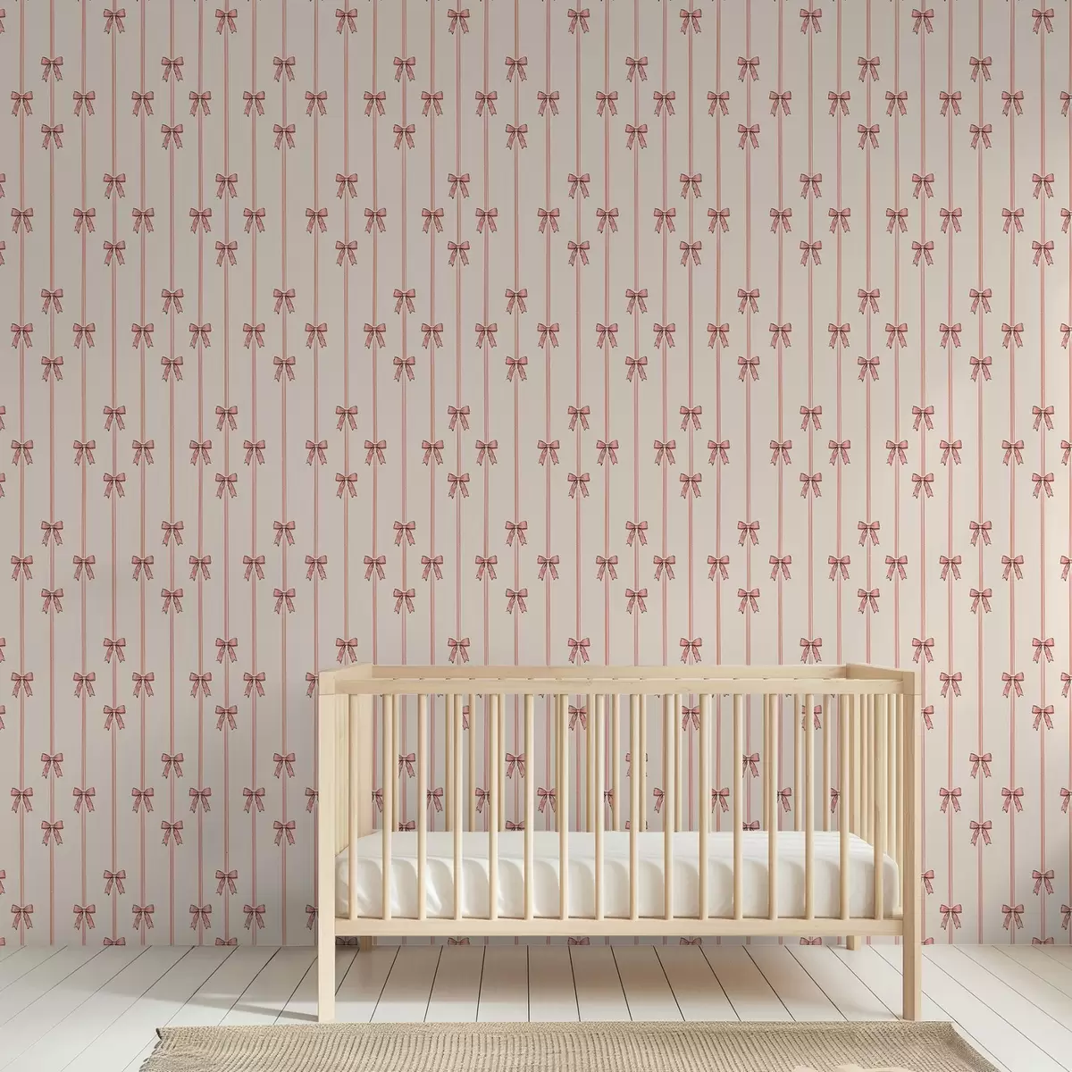 Papel pintado Cintas verticales con lazos, fondo marfil Nr. a00653