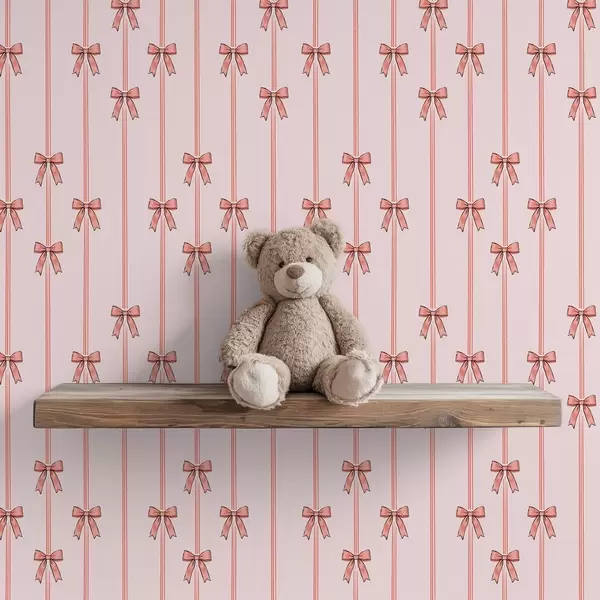 Papel pintado Cintas verticales con lazos, fondo rosa empolvado a00653v2