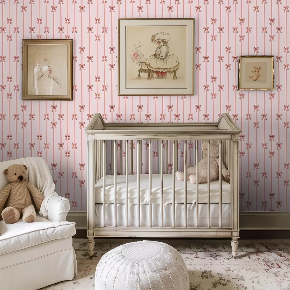 Papel pintado Cintas verticales con lazos, fondo rosa empolvado Nr. a00653v2