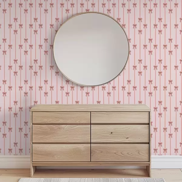 Papel pintado Cintas verticales con lazos, fondo rosa empolvado Nr. a00653v2