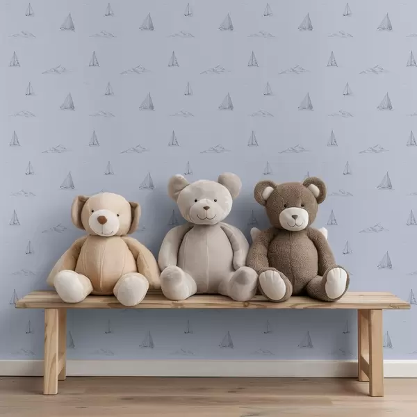 Papel pintado Bocetos de yates e islas, fondo azul Nr. a00654v3