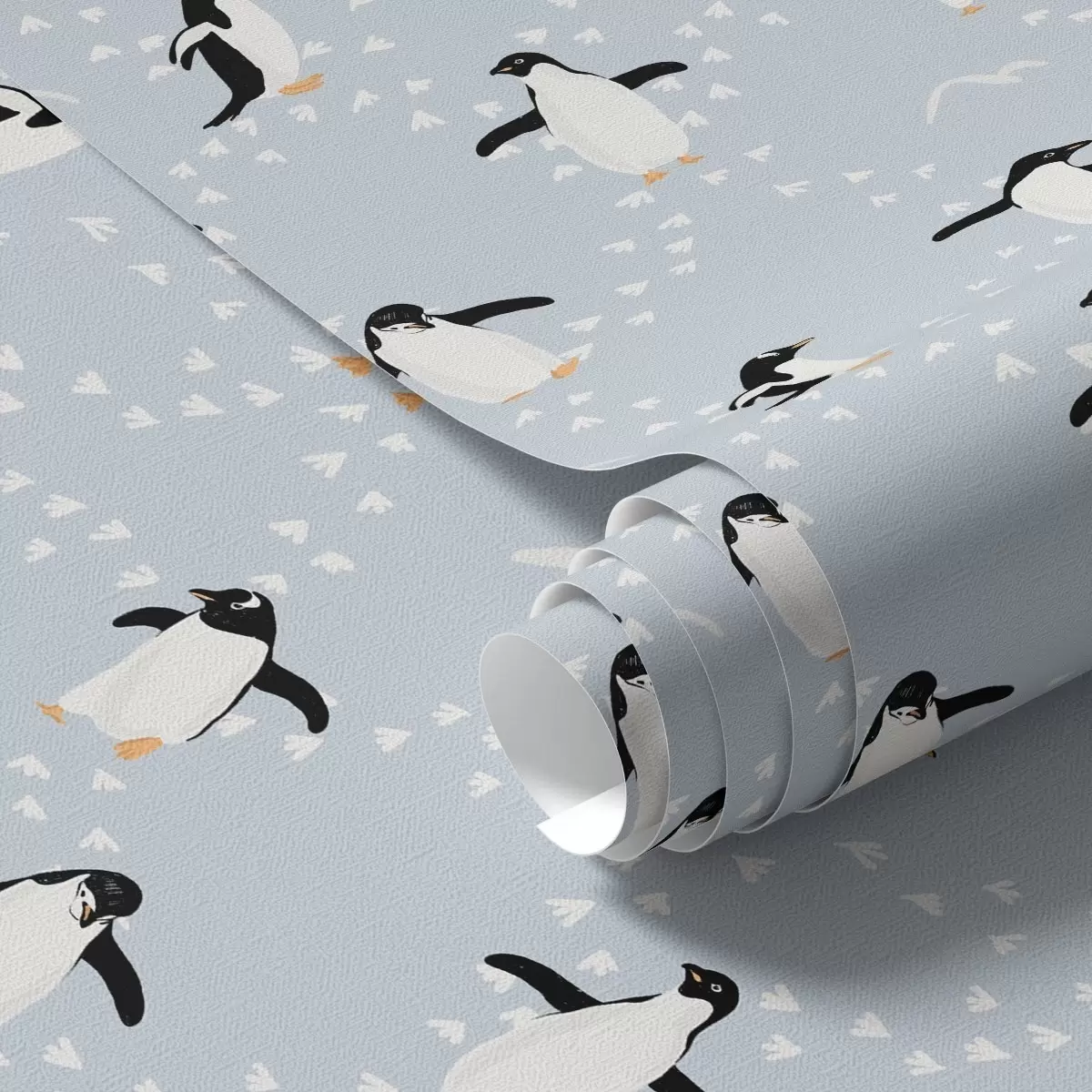 Papel pintado Pingüinos sobre fondo azul claro, ritmo de huellas Nr. a00655v2