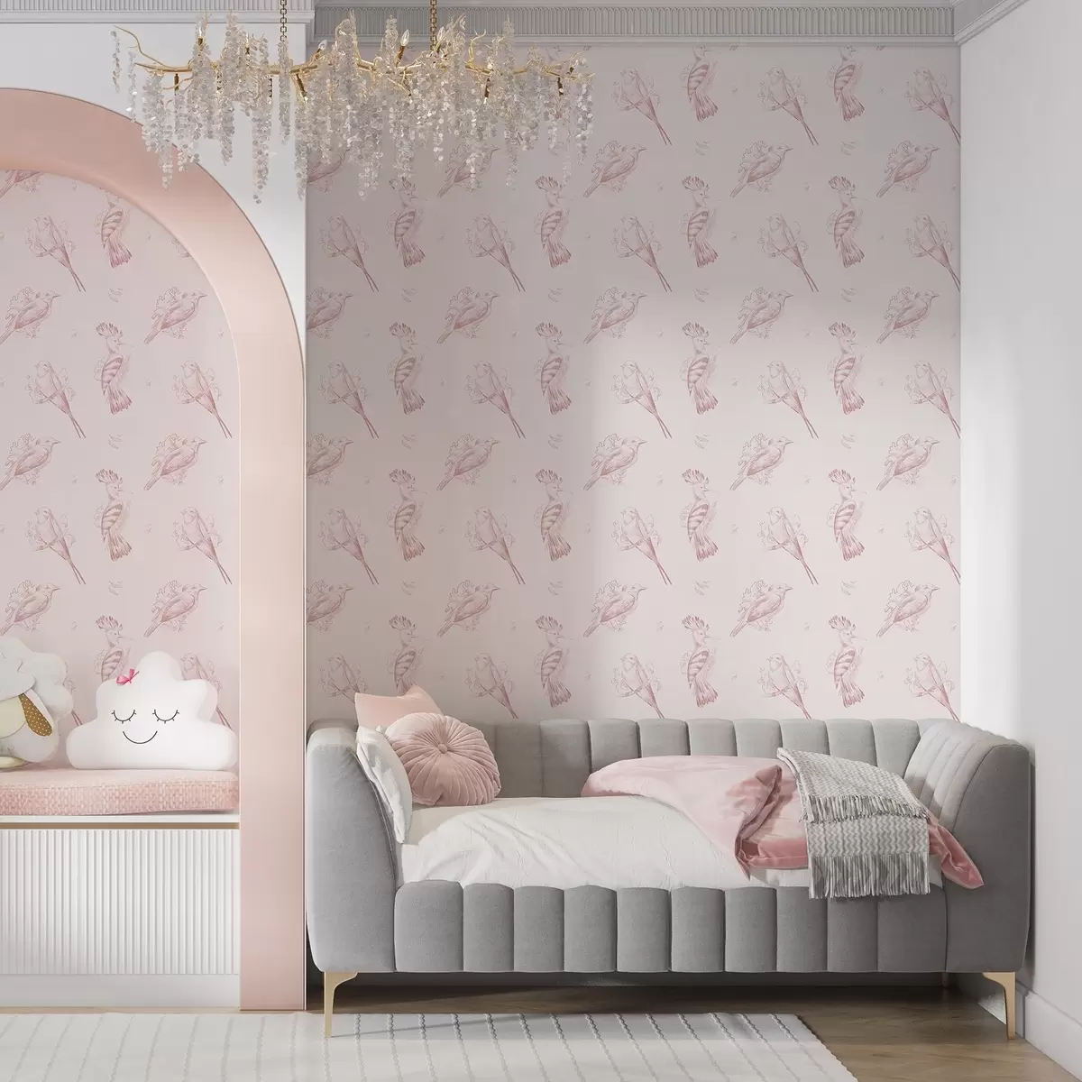 Papel pintado Toile de pájaros: bocetos de pájaros, fondo rosa suave Nr. a00656