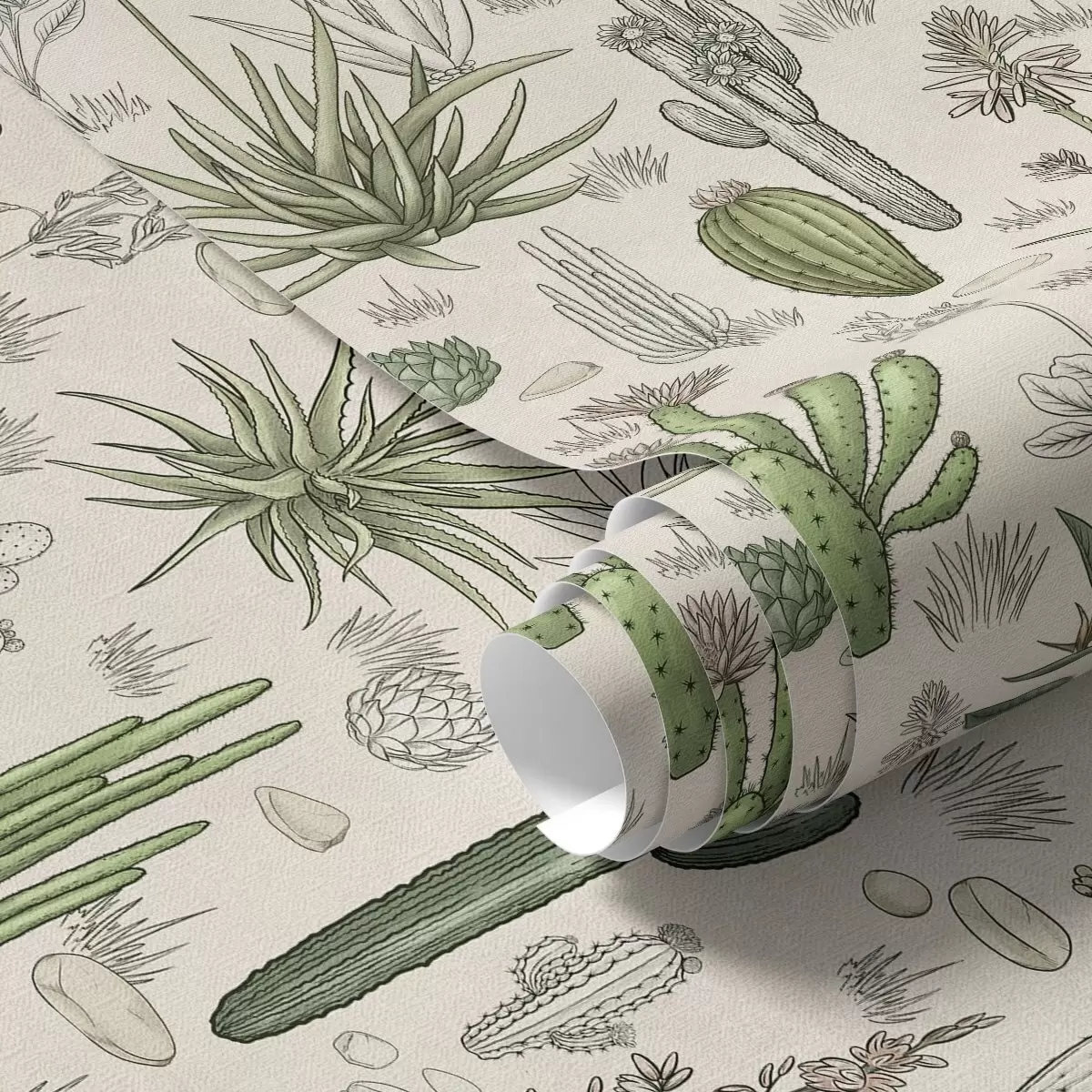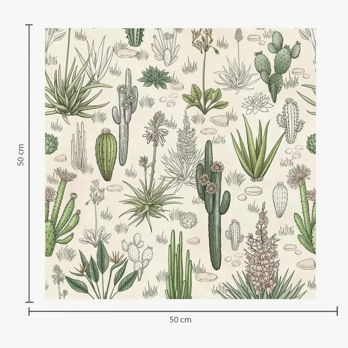 Papel pintado Cactus y suculentas sobre un fondo cálido, estampado detallado Nr. a00666