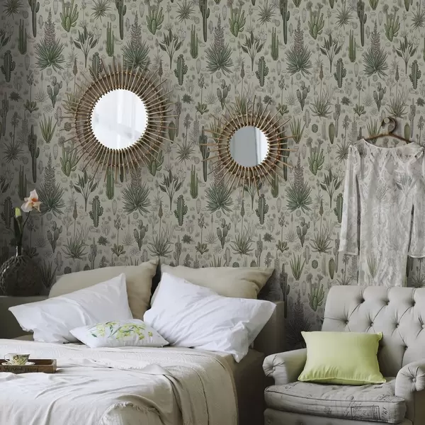 Papel pintado Cactus y suculentas sobre un fondo cálido, estampado detallado Nr. a00666