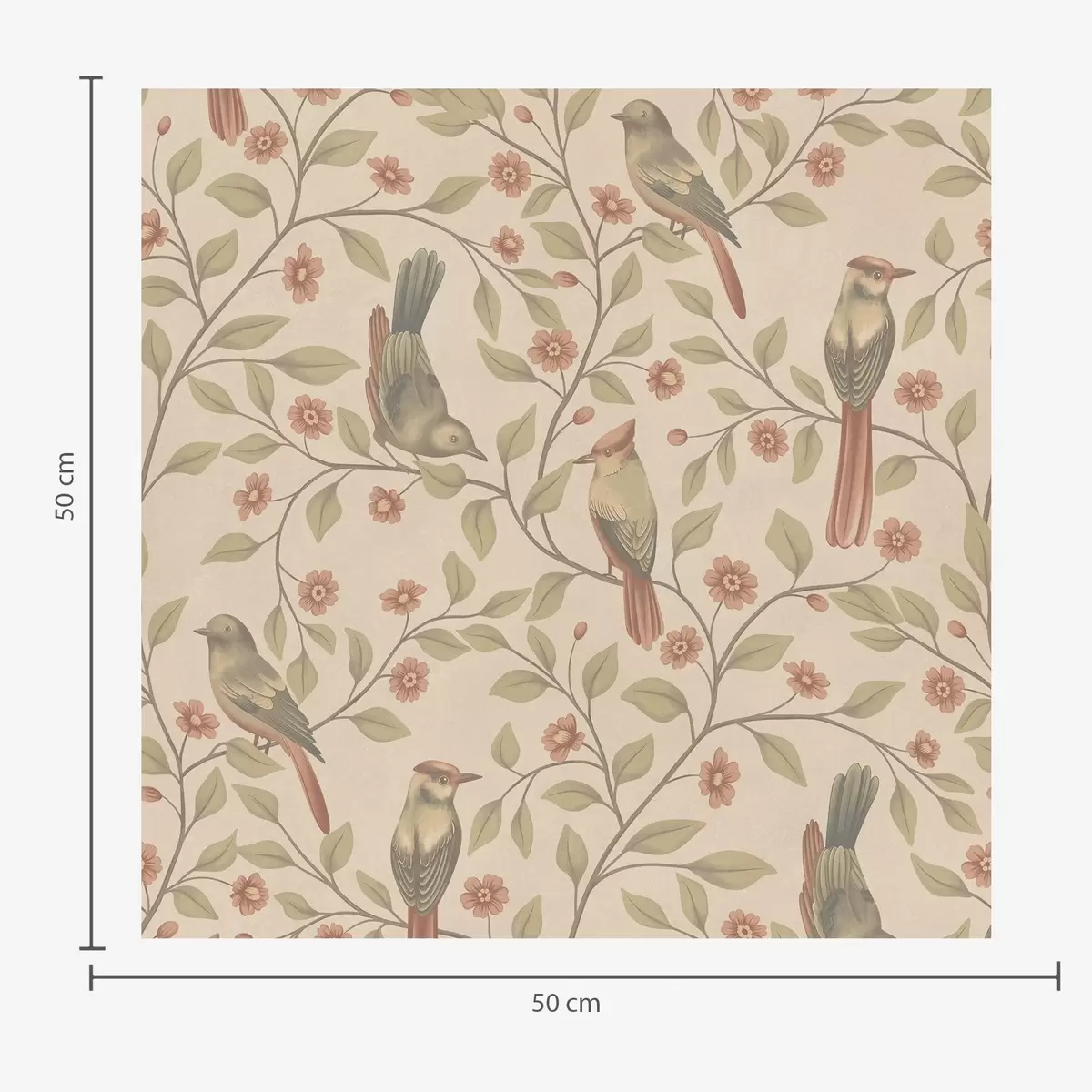 Papel pintado Pájaros en ramas florecidas, fondo beige cálido a00670