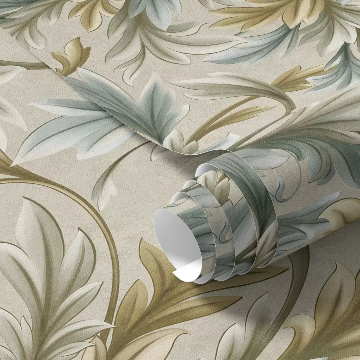 Papel pintado Hojas voluminosas en tonos pastel de verde y beige a00674