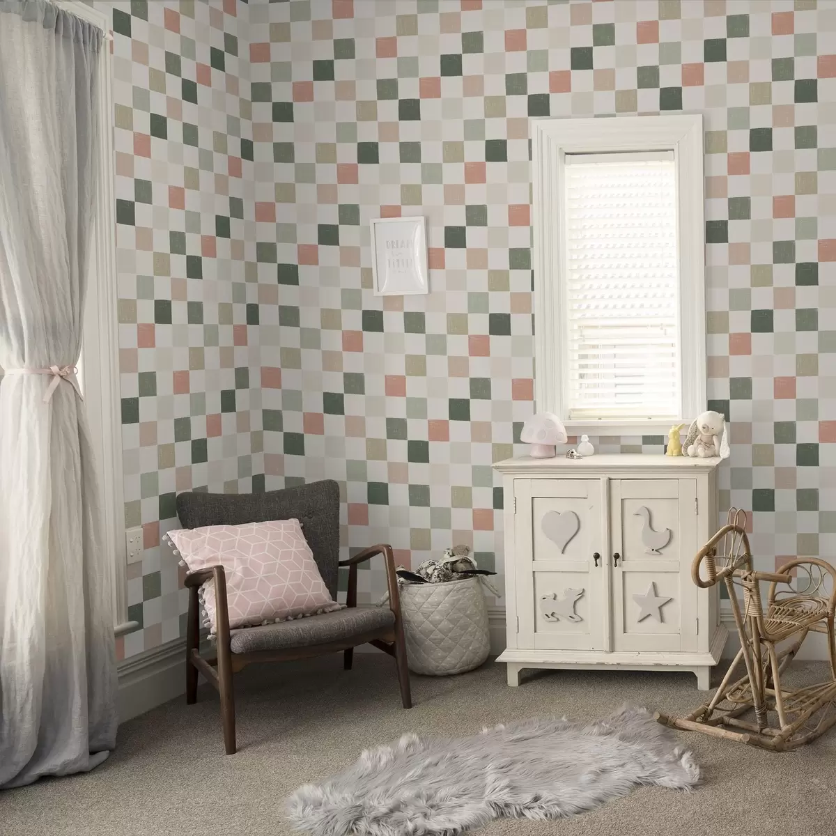 Papel pintado Suave manta a cuadros en tonos verde pastel, rosa y beige Nr. a00676