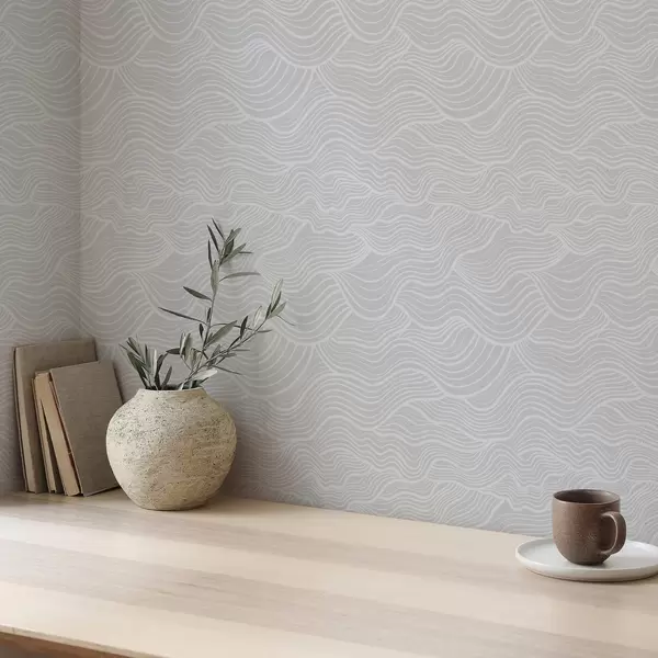 Papel pintado Adorno ondulado: líneas claras sobre fondo gris Nr. a00681v2