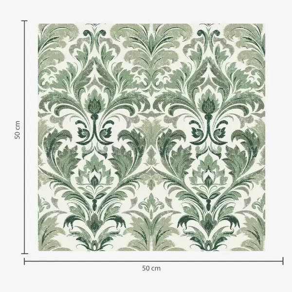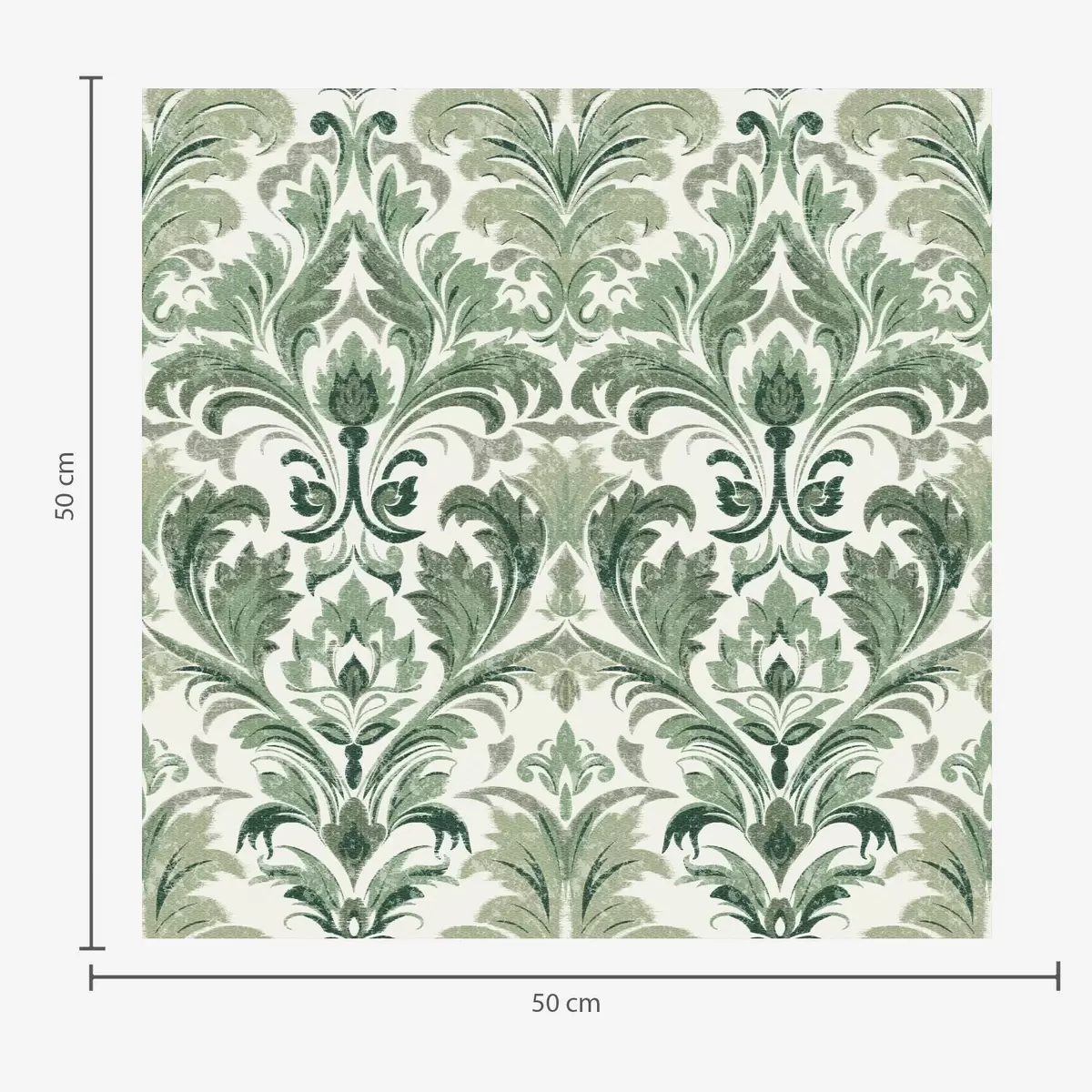 Papel pintado Damasco verde con textura en relieve sobre fondo claro Nr. a00692