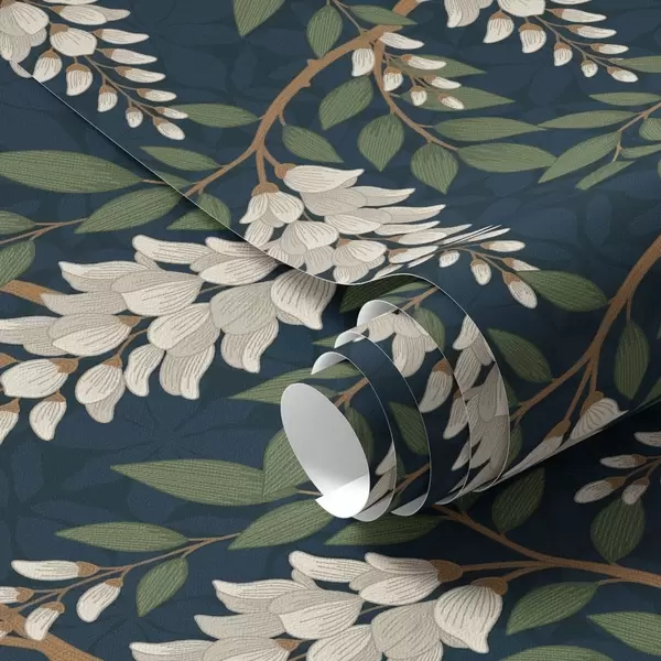 Papel pintado Glicinia marfil sobre fondo verde azulado intenso Nr. a00694v1