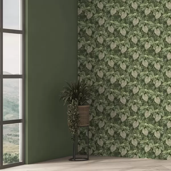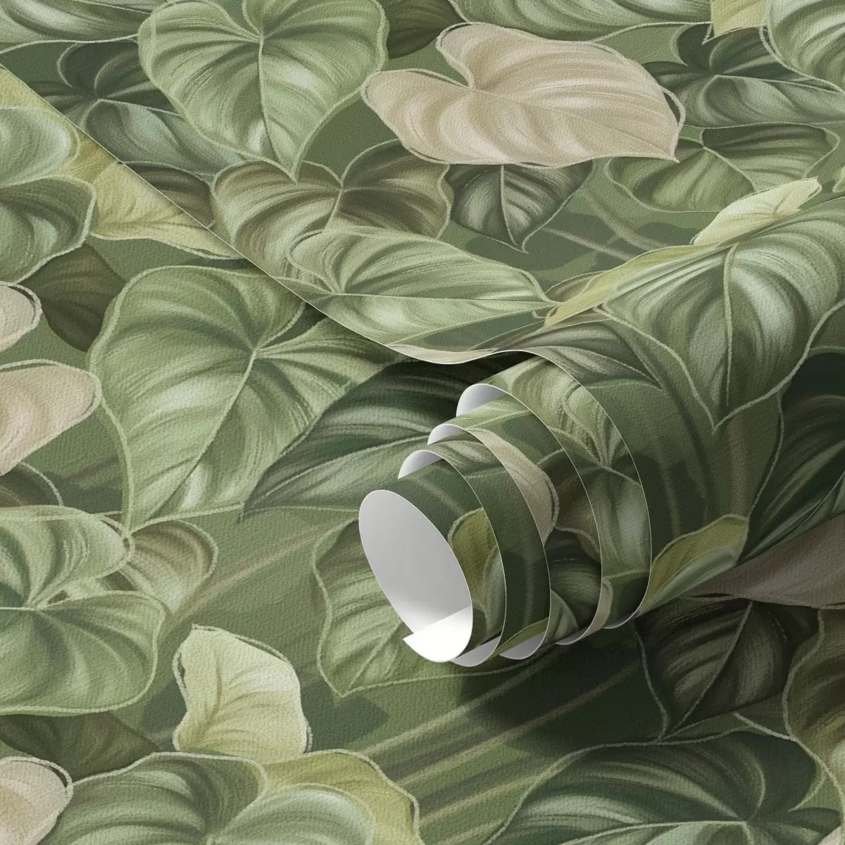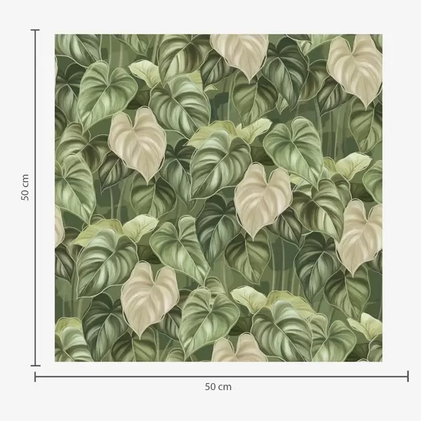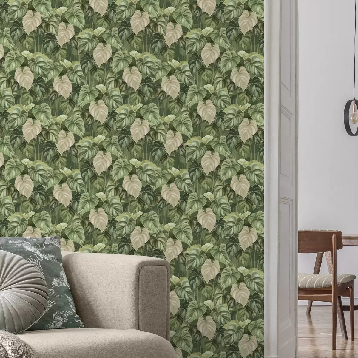 Papel pintado Exuberantes hojas de filodendro en tonos verdes y marfil Nr. a00695