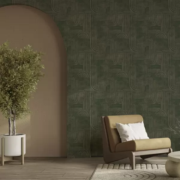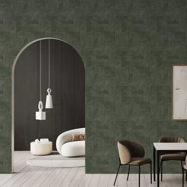 Papel pintado Diseño geométrico con arcos en una paleta de colores verdes Nr. a00697