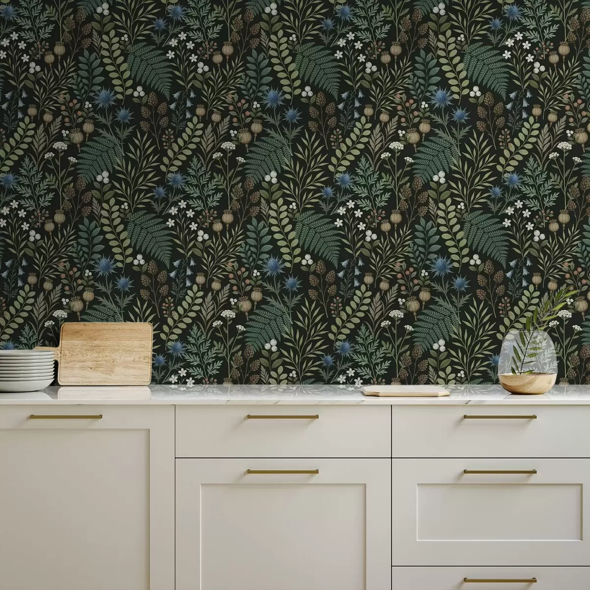 Papel pintado Hierbas, bayas y semillas sobre un fondo oscuro Nr. a00706