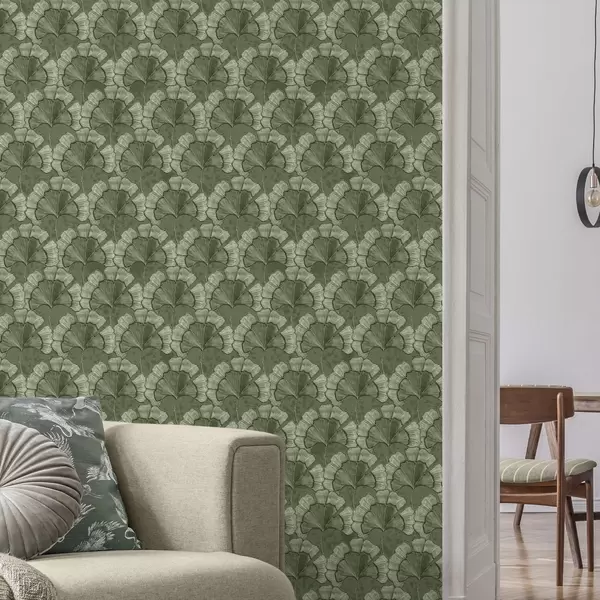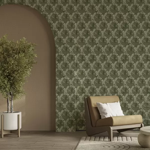 Papel pintado Diseño gráfico con ginkgo en una paleta de colores verdes fríos Nr. a00709