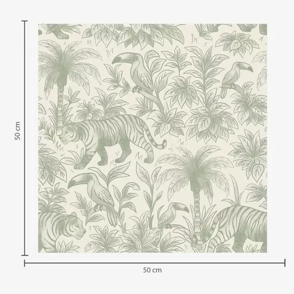 Papel pintado Tigres y aves tropicales entre palmeras sobre un fondo claro Nr. a00711