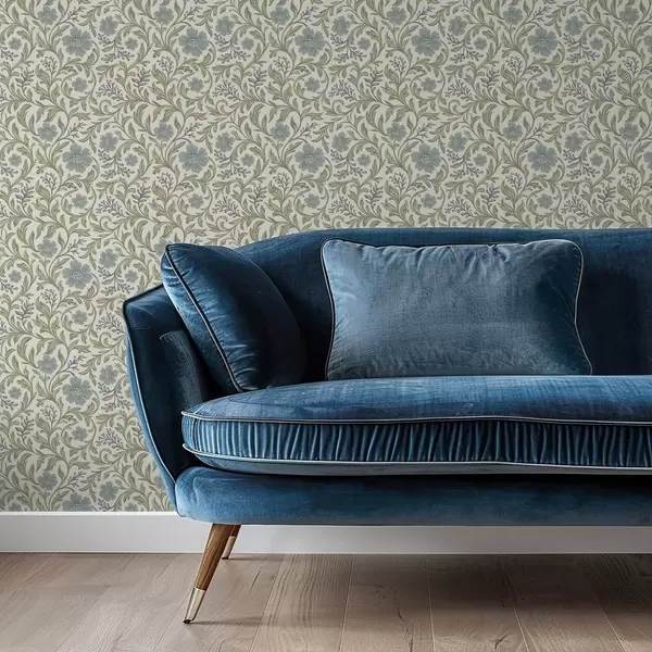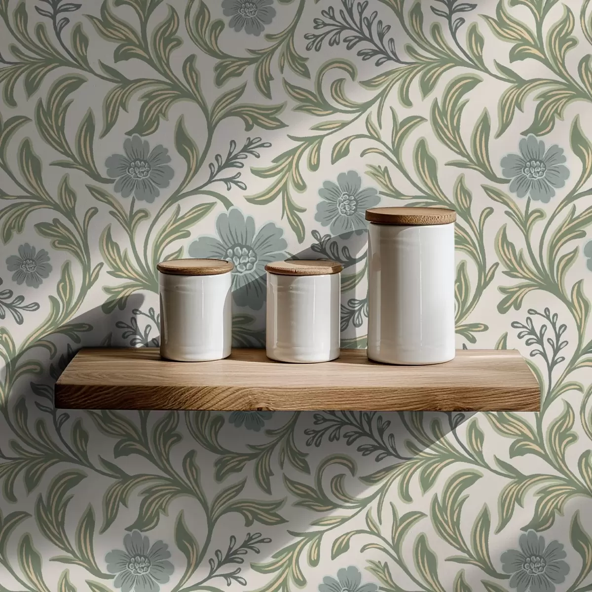 Papel pintado Adorno floral gris salvia sobre fondo claro Nr. a00712