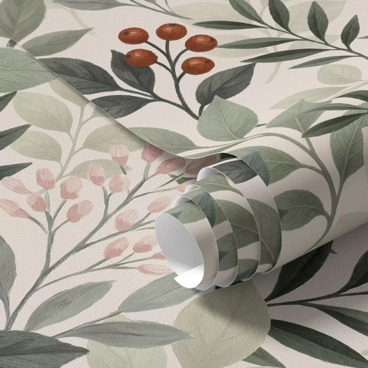 Papel pintado Hojas con bayas, fondo claro Nr. a00713