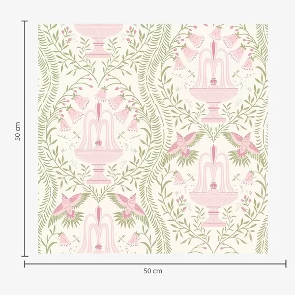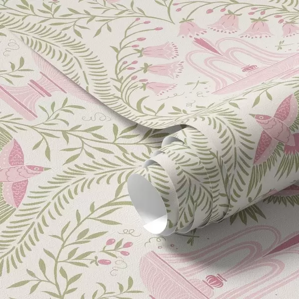 Papel pintado Fuentes, colibríes y volutas verdes sobre fondo claro Nr. a00723