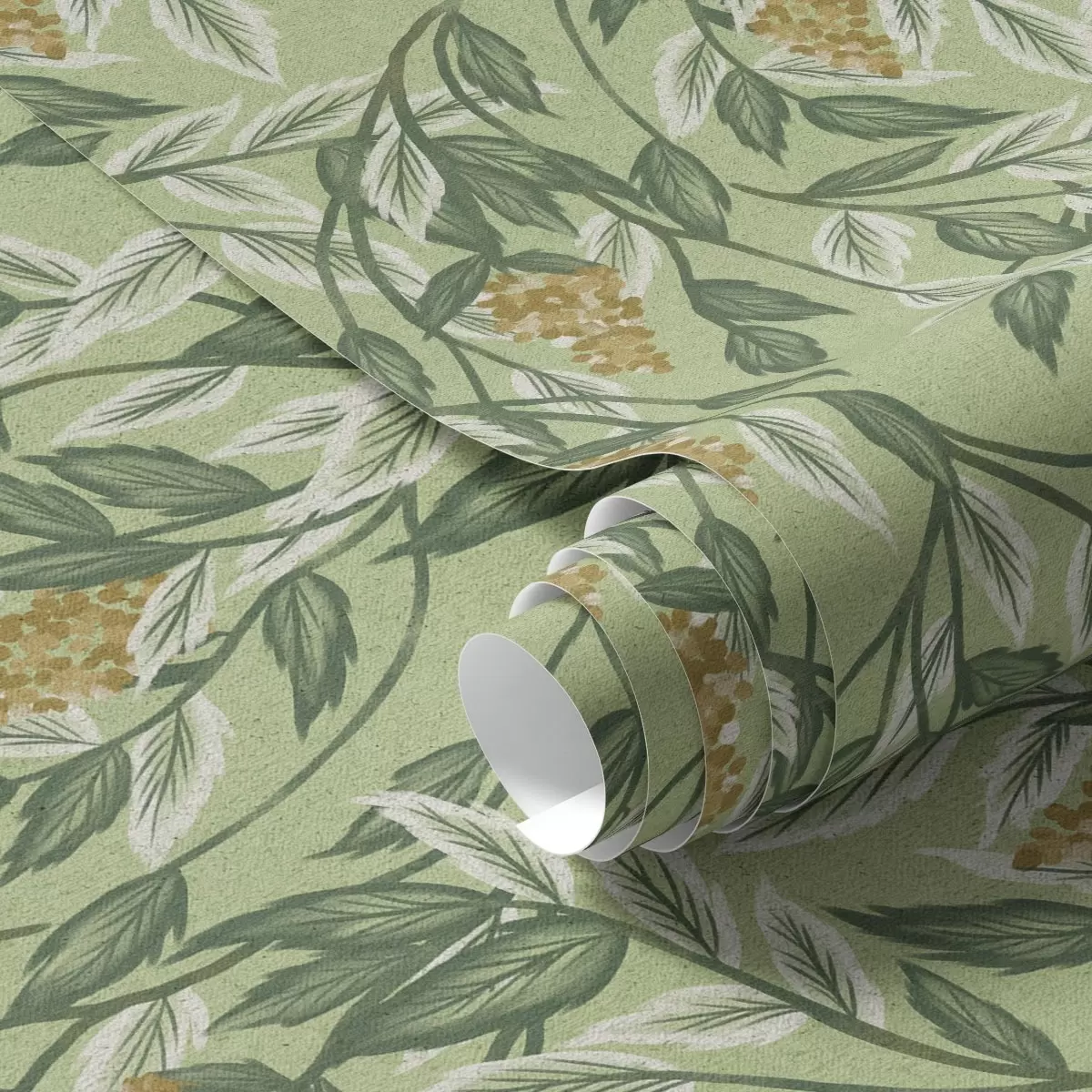 Papel pintado Ramitas con racimos de bayas sobre fondo verde a00734