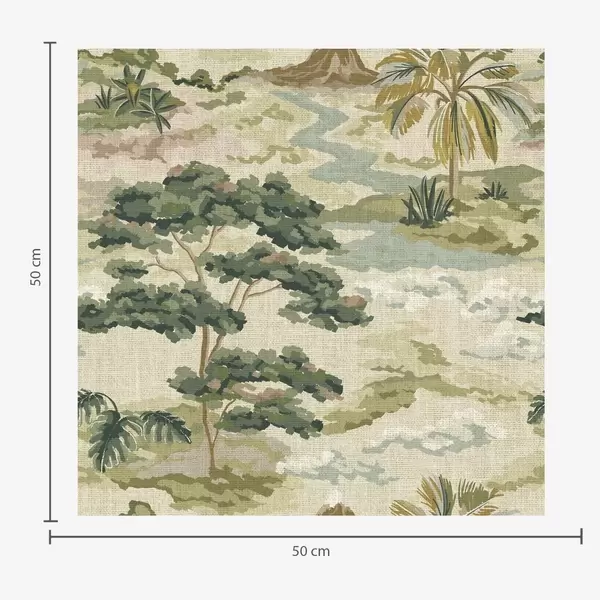 Papel pintado Paisaje con río, árboles y palmeras en tonos suaves Nr. a00736