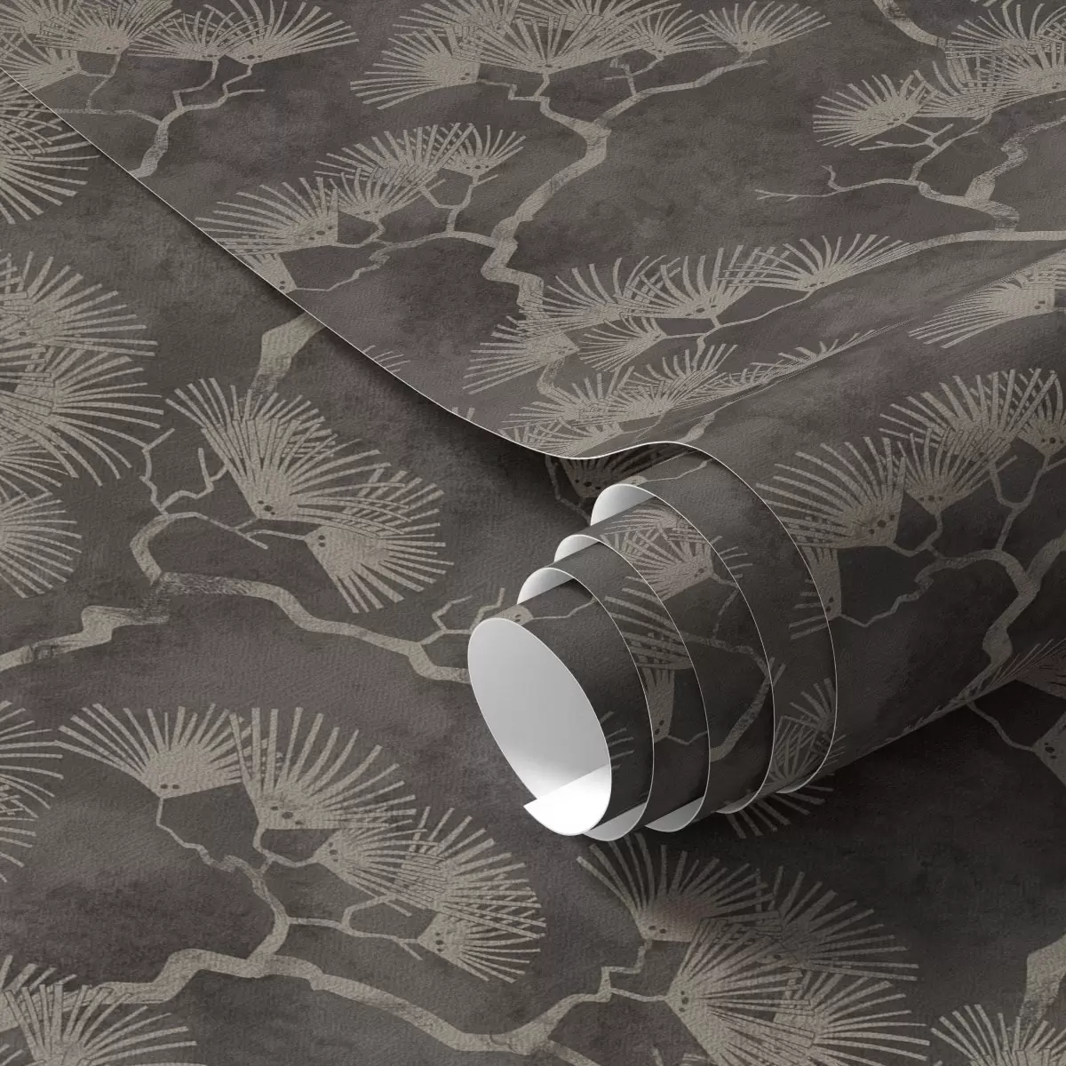 Papel pintado Siluetas de pinos sobre fondo oscuro, textura brumosa Nr. a00742