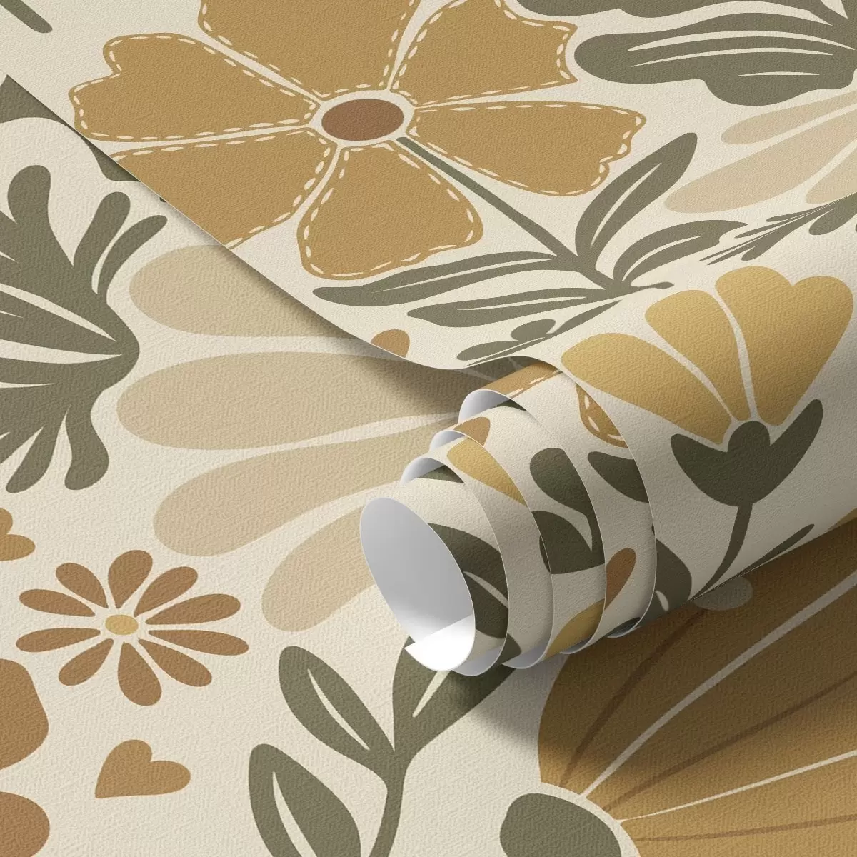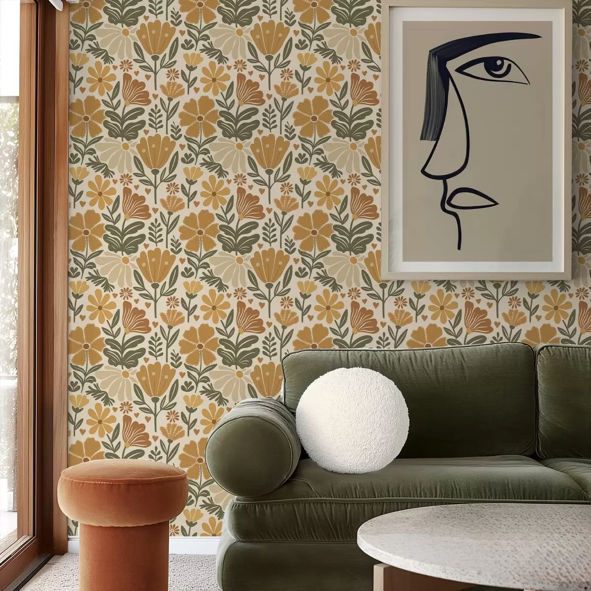 Papel pintado Flores estilizadas en tonos cálidos con corazones Nr. a00752