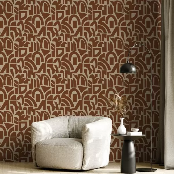 Papel pintado Formas geométricas de terracota sobre lino Nr. a00774