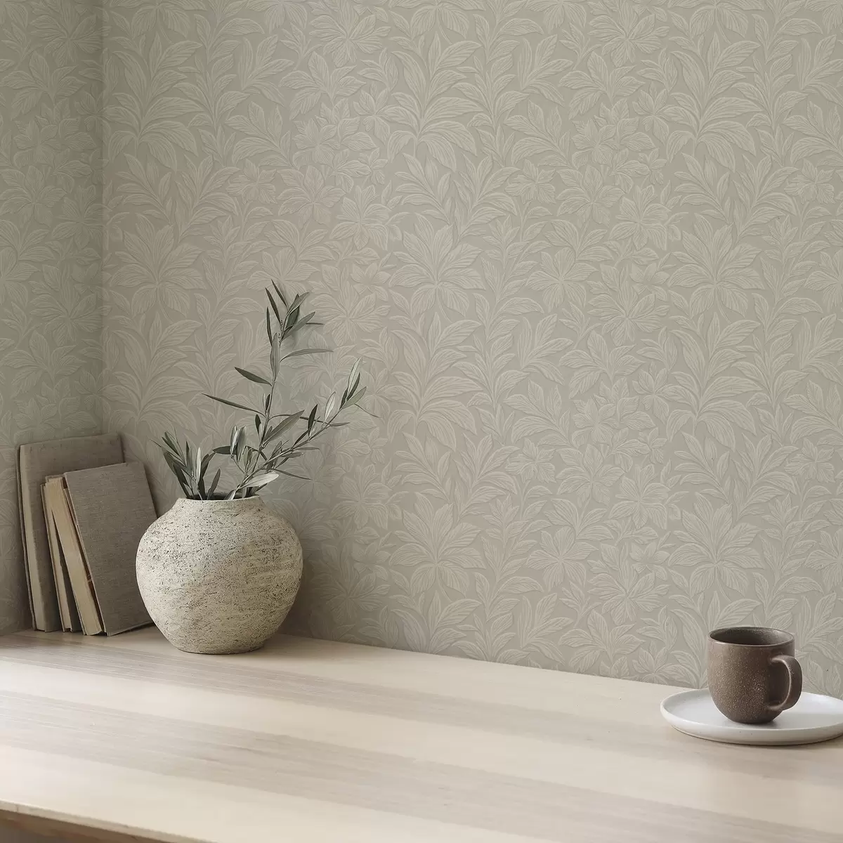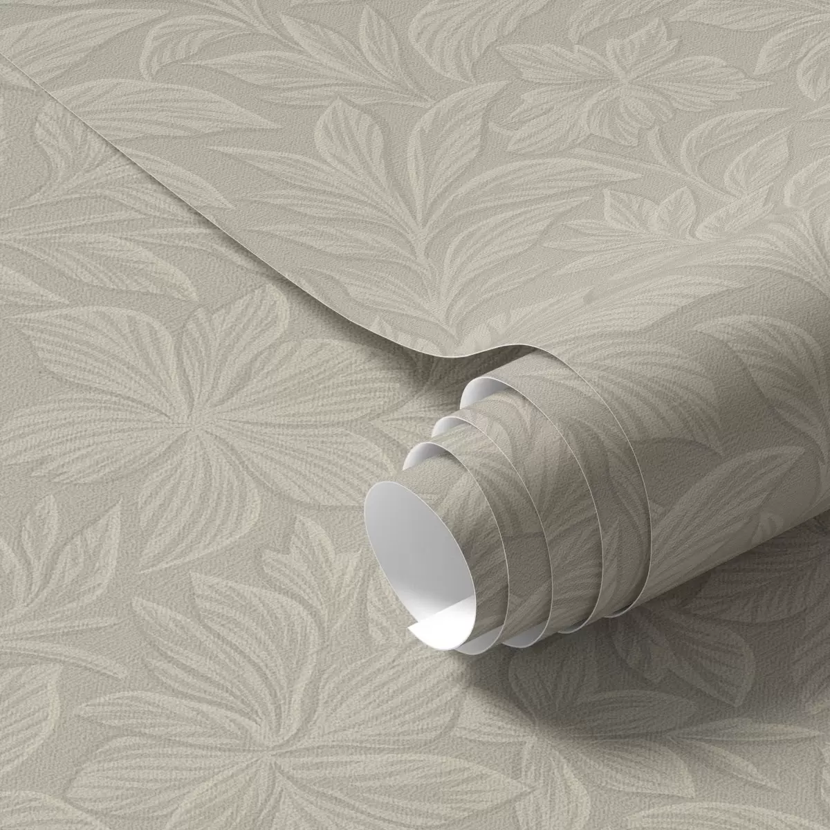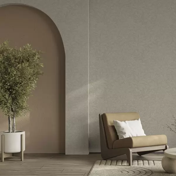Papel pintado Siluetas de hojas en relieve, cálido color topo Nr. a00781