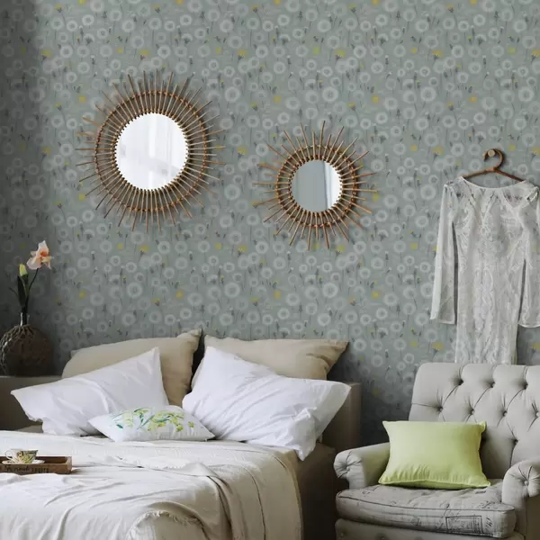 Papel pintado Dientes de león esponjosos y semillas sobre un fondo de menta Nr. a00790