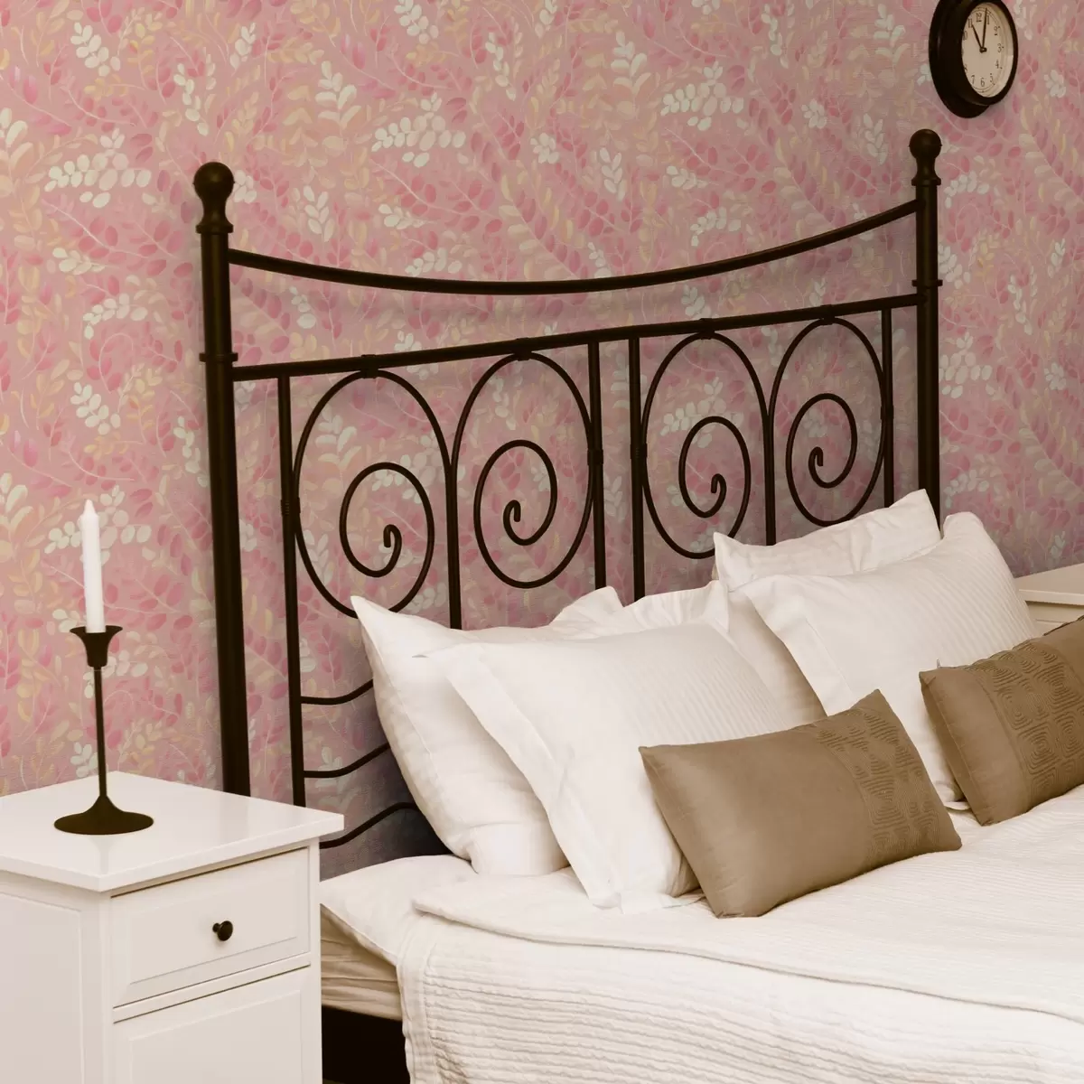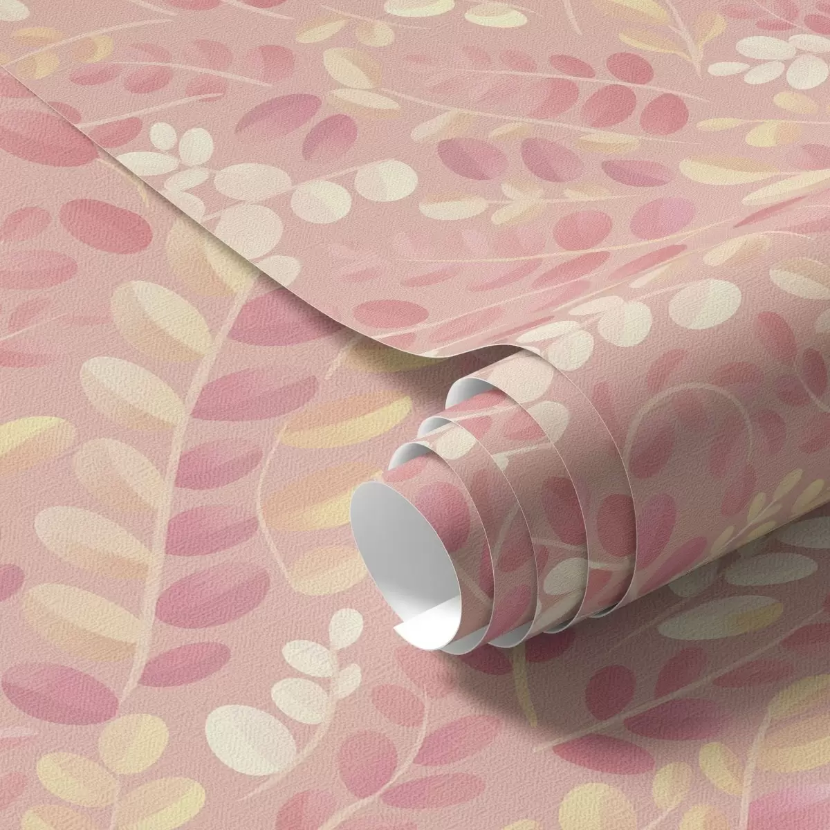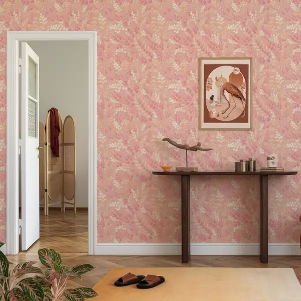 Papel pintado Delicado follaje rosa-melocotón con un suave brillo de color Nr. a00799