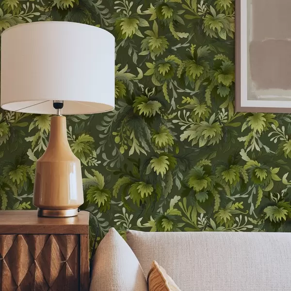 Papel pintado Denso follaje verde sobre un fondo verde oscuro a00805