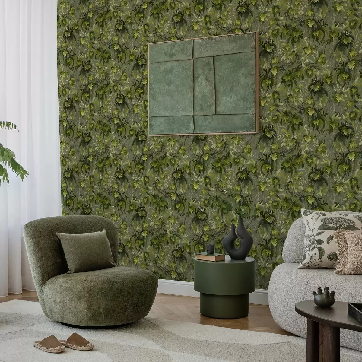 Papel pintado Denso follaje verde sobre un fondo gris verdoso Nr. a00805v1