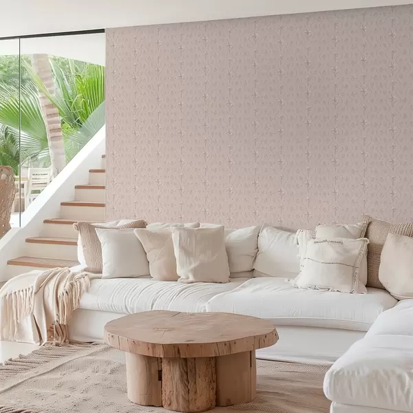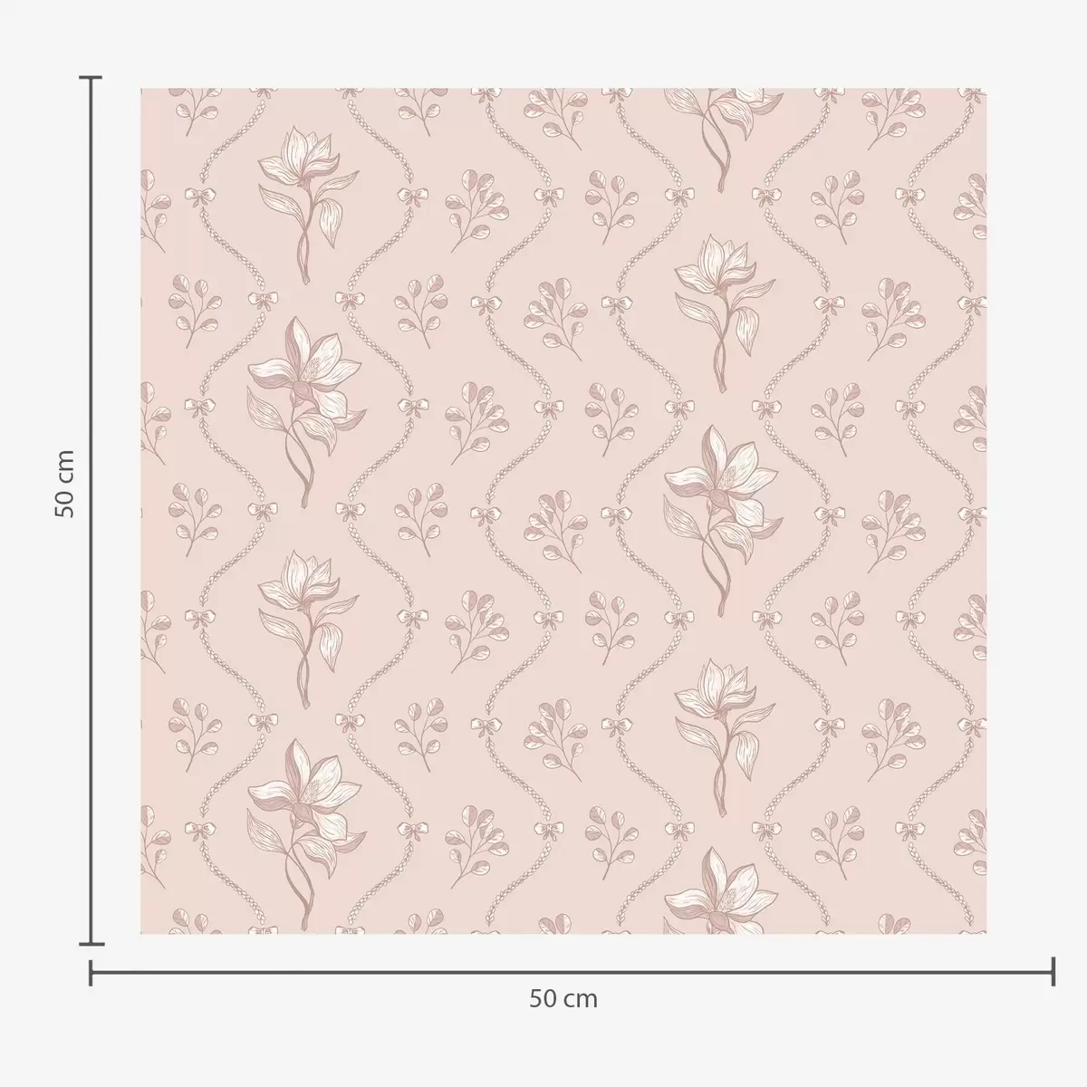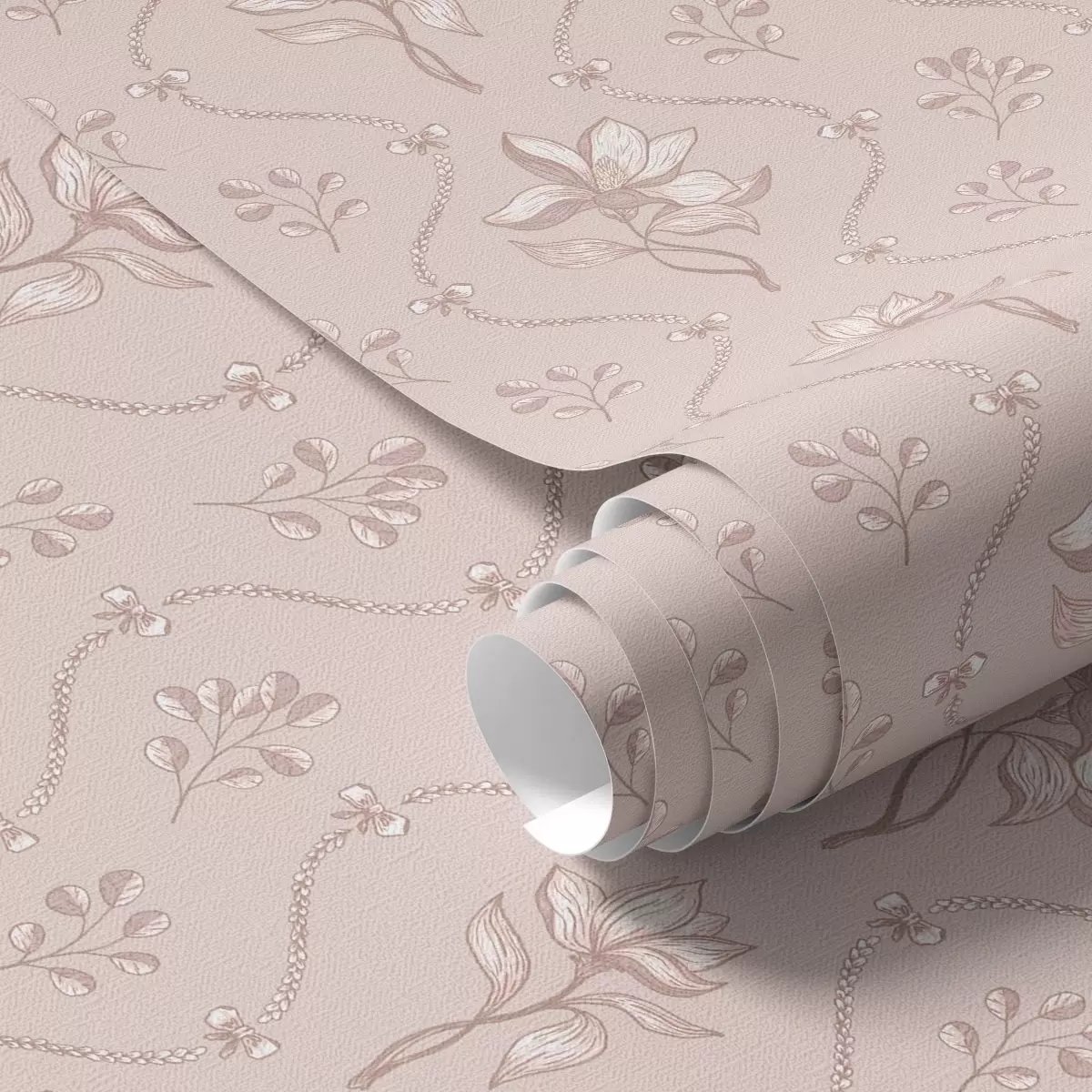 Papel pintado Pequeñas flores y cintas en suaves tonos rosa y beige Nr. a00808