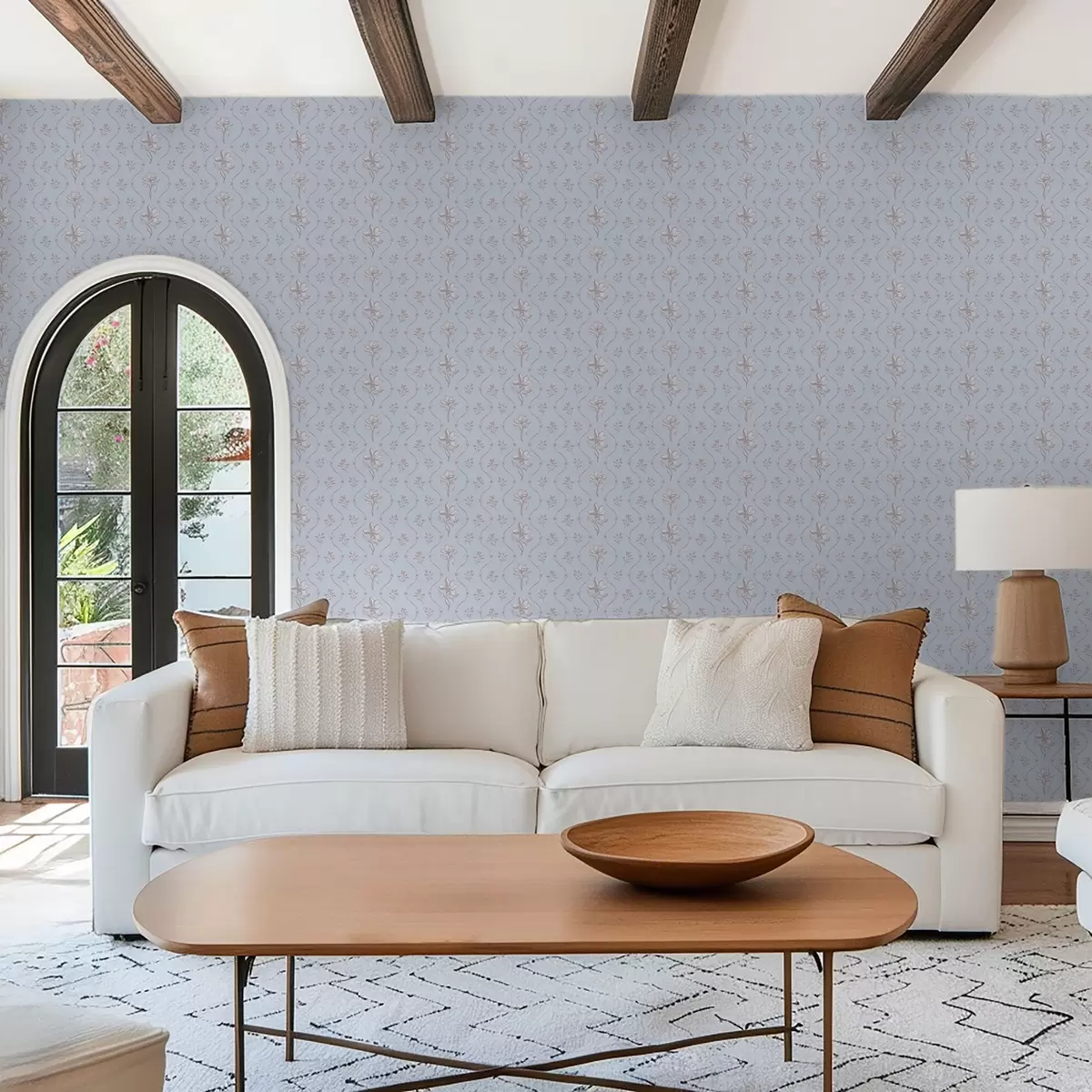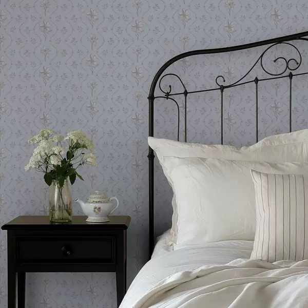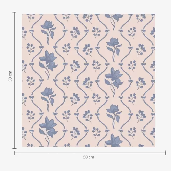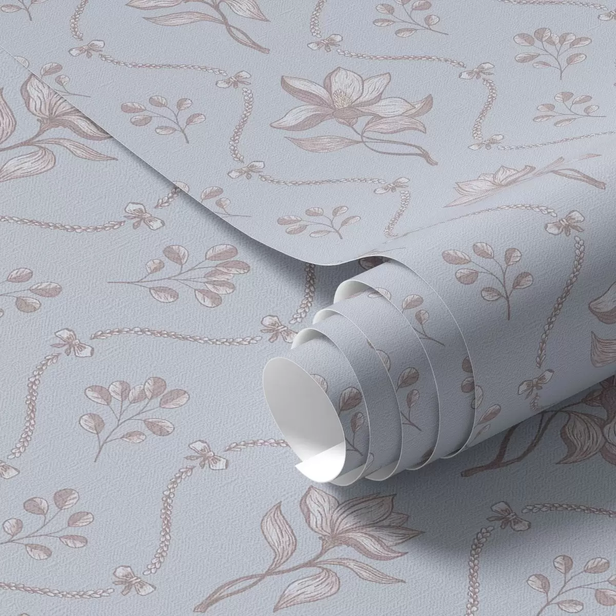 Papel pintado Pequeñas flores y cintas en tonos azul pálido Nr. a00808v1
