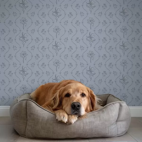 Papel pintado Pequeñas flores y cintas en tonos gris azulado Nr. a00808v2