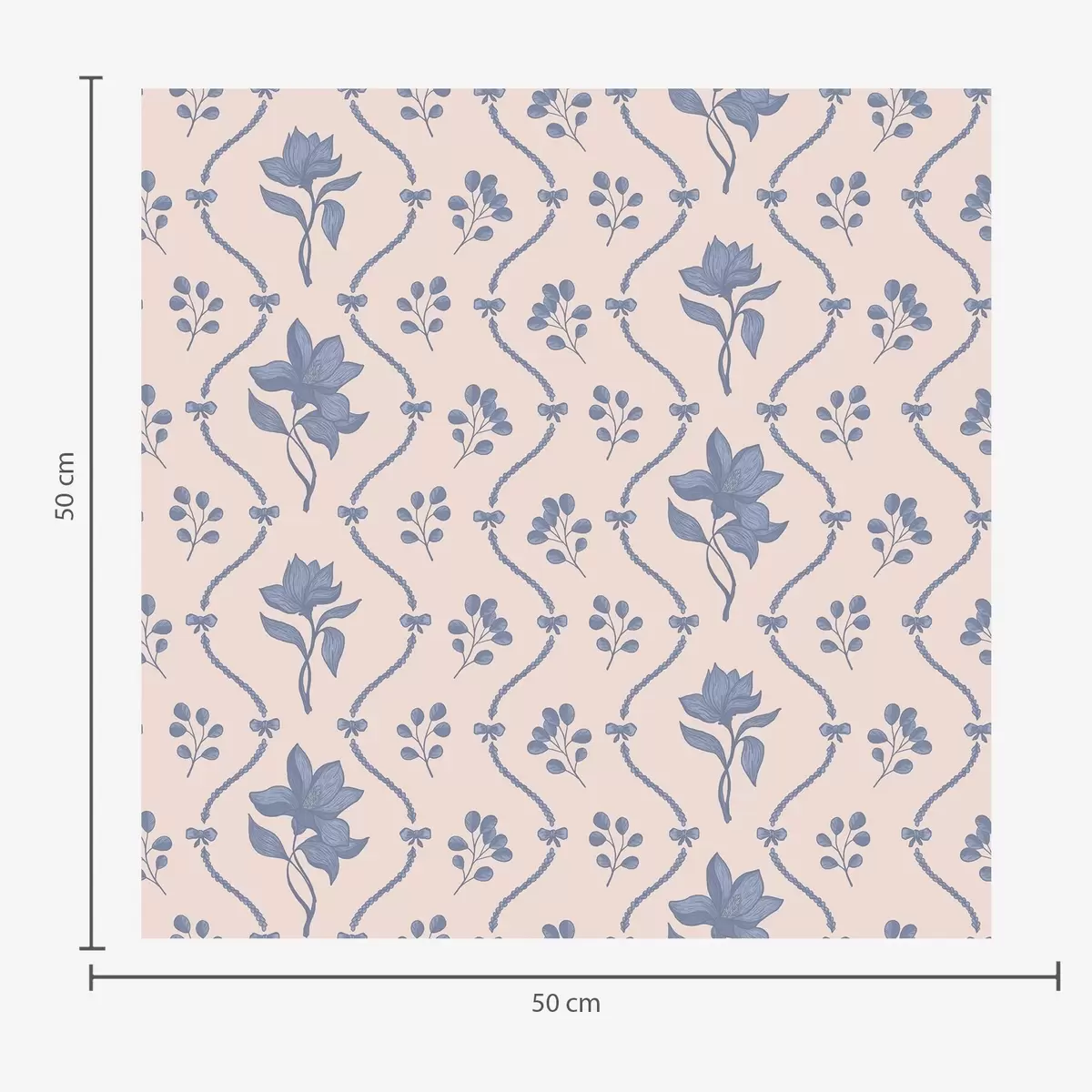 Papel pintado Pequeñas flores y cintas en tonos azules y rosas Nr. a00808v3