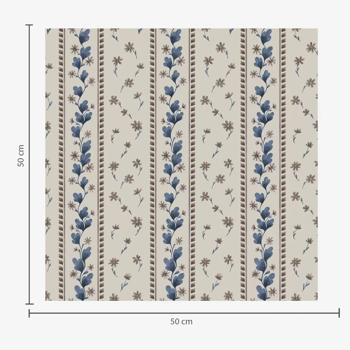 Papel pintado Rayas florales verticales en tonos azul y marrón Nr. a00811v3