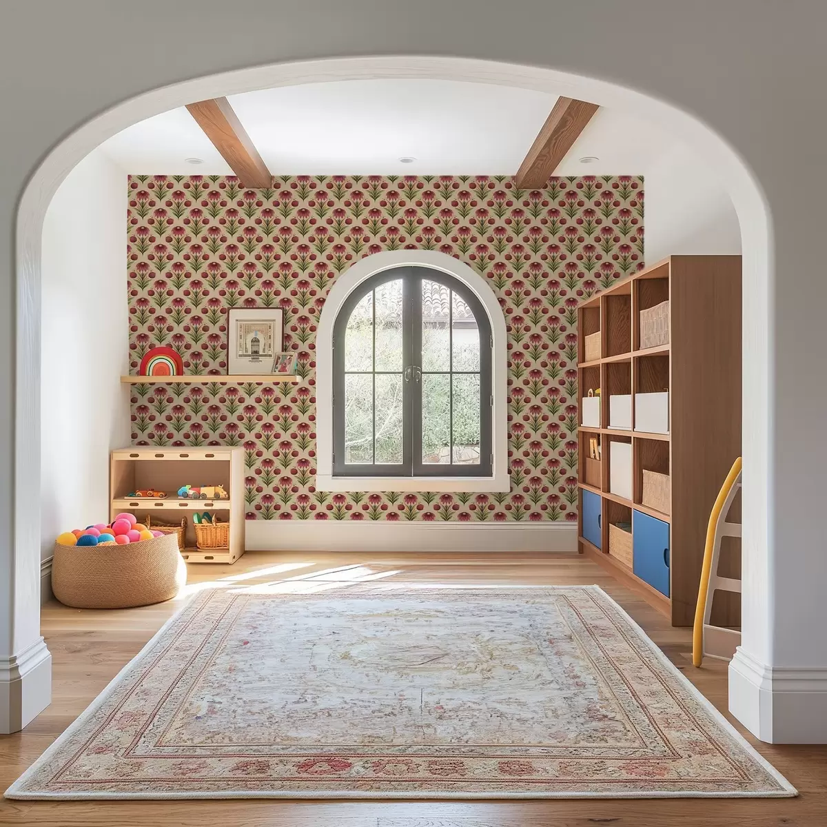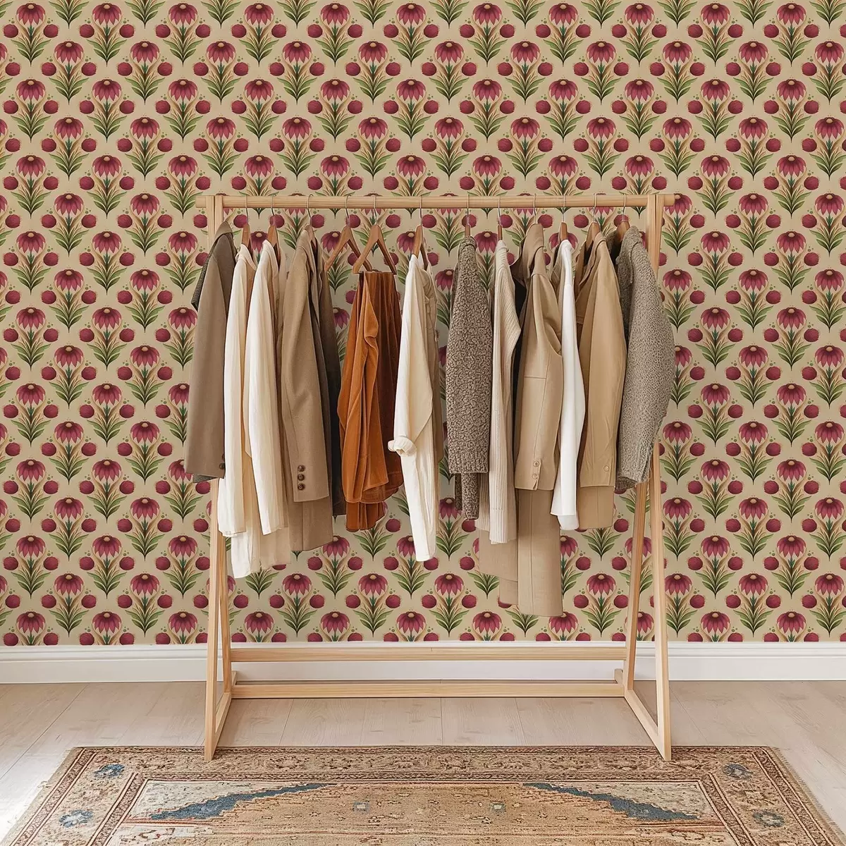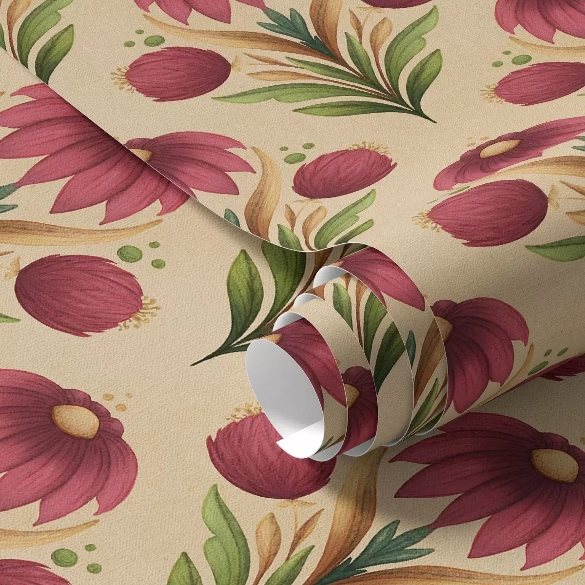 Papel pintado Adorno floral simétrico sobre fondo beige cálido Nr. a00812v6
